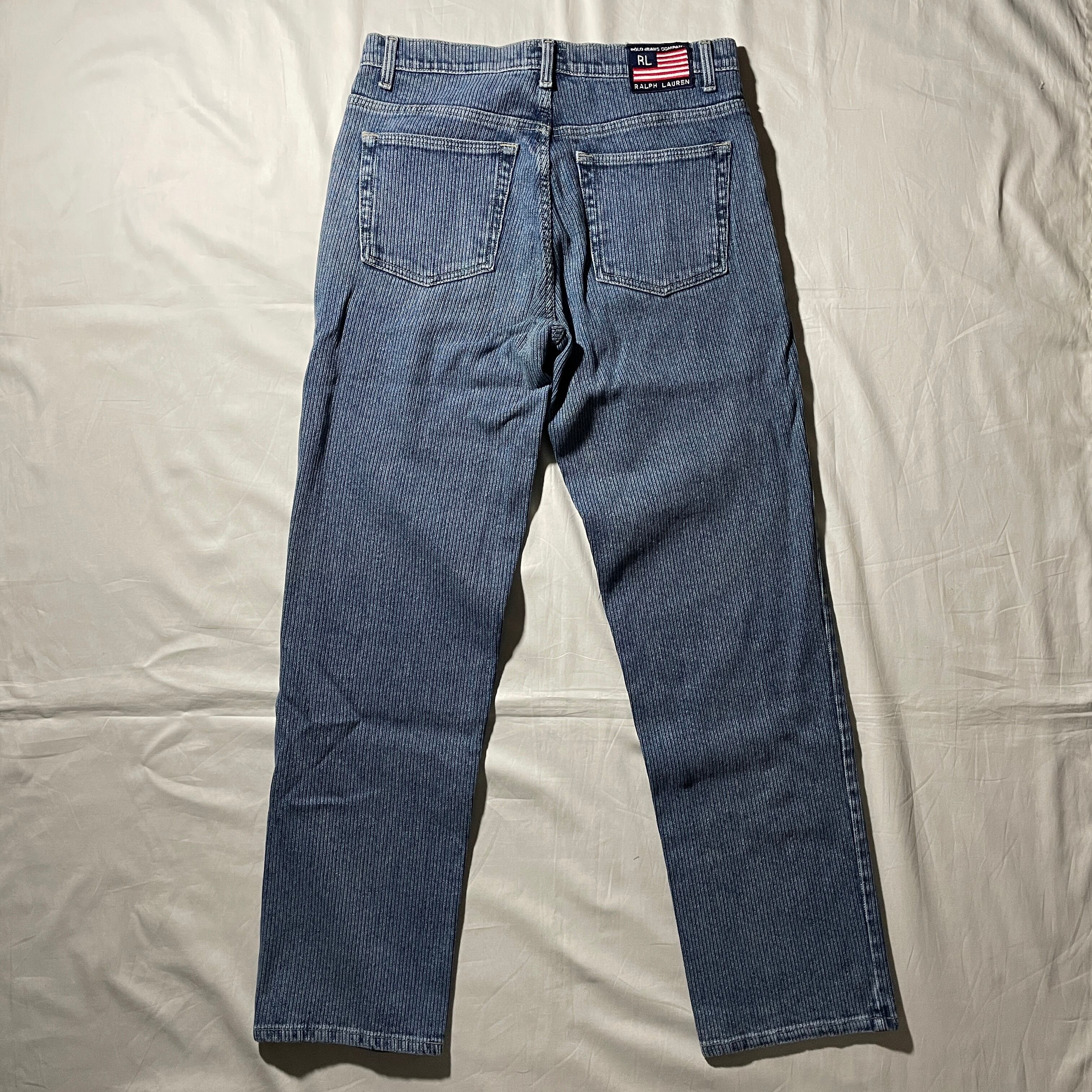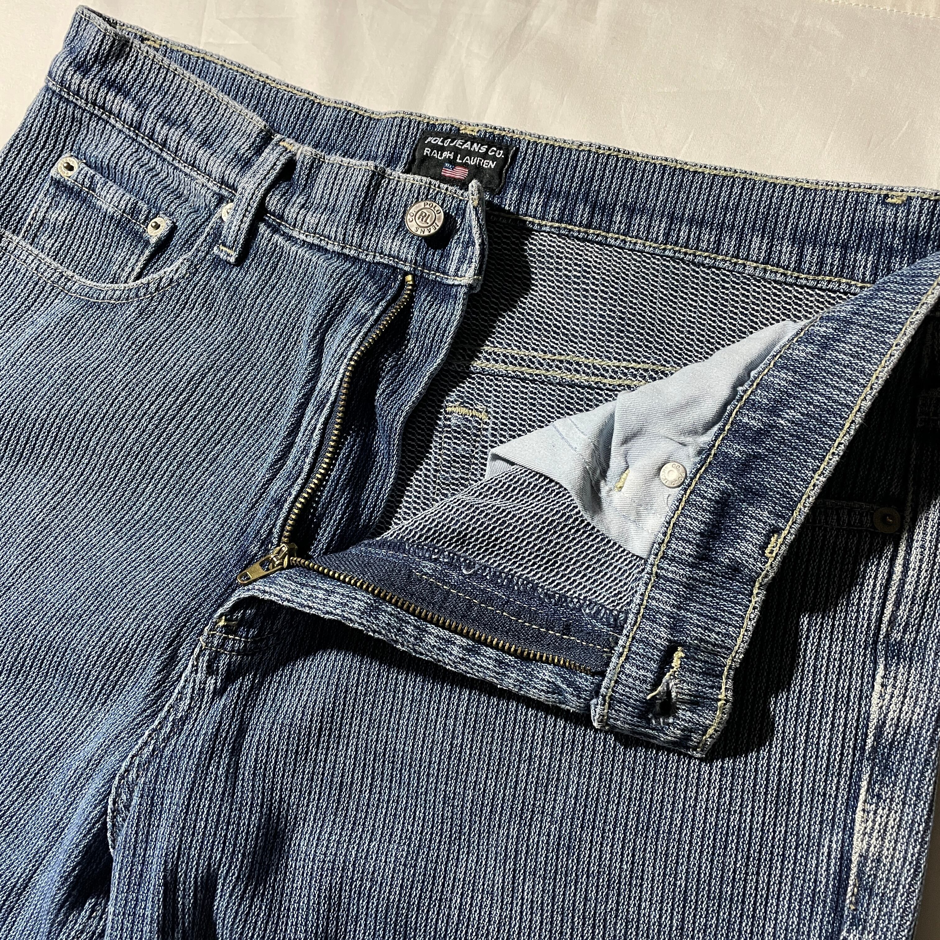 90s頃のPOLO JEANS。太めのストレートシルエット。生地がとても変わった織り方で太畝のコーデュロイみたいになってます。