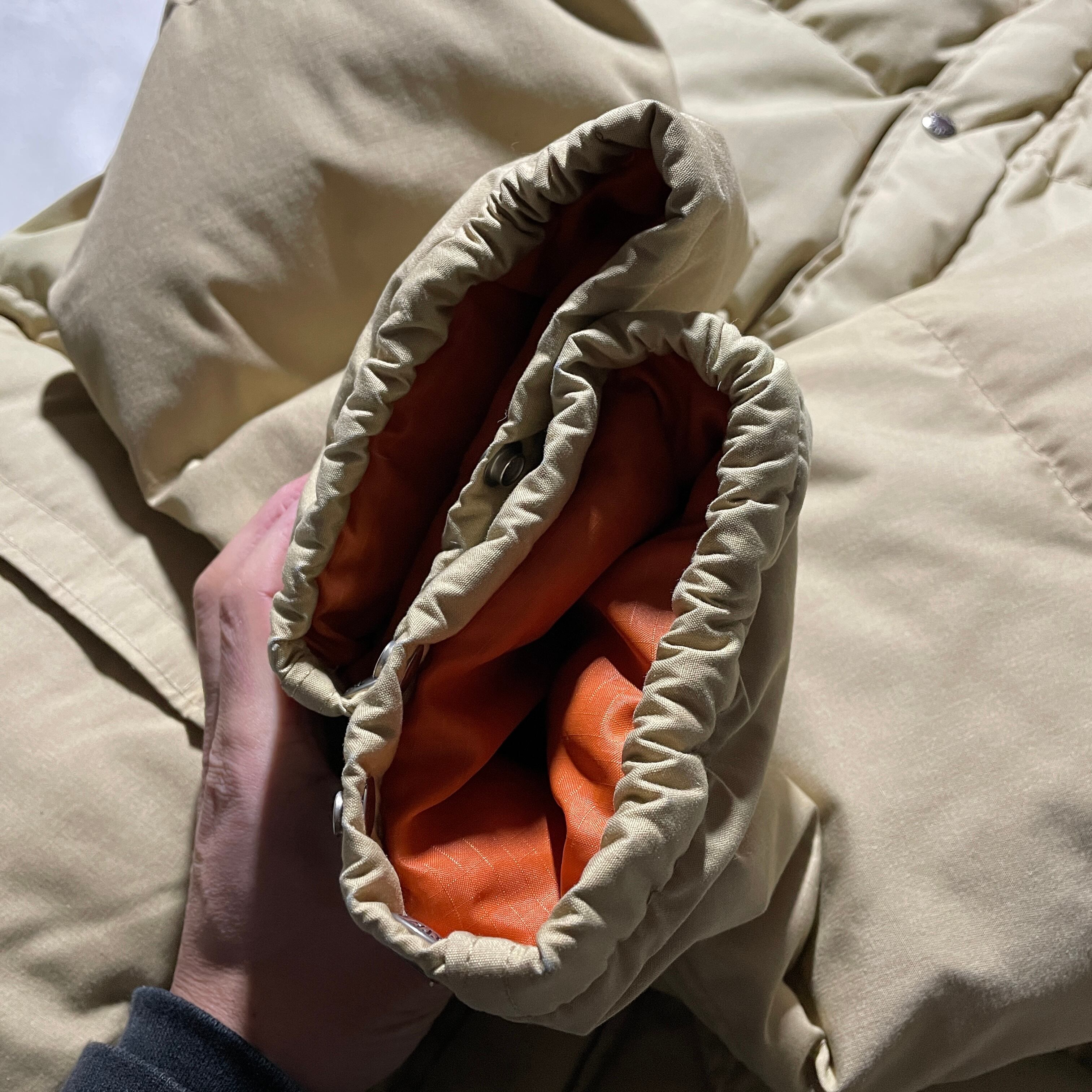 70s頃の茶タグ。シェルはガシッとしたコットン地タイプ。ヴィンテージノースダウンジャケットでは定番の形です。インナーのオレンジがノースっぽくてgoodです。