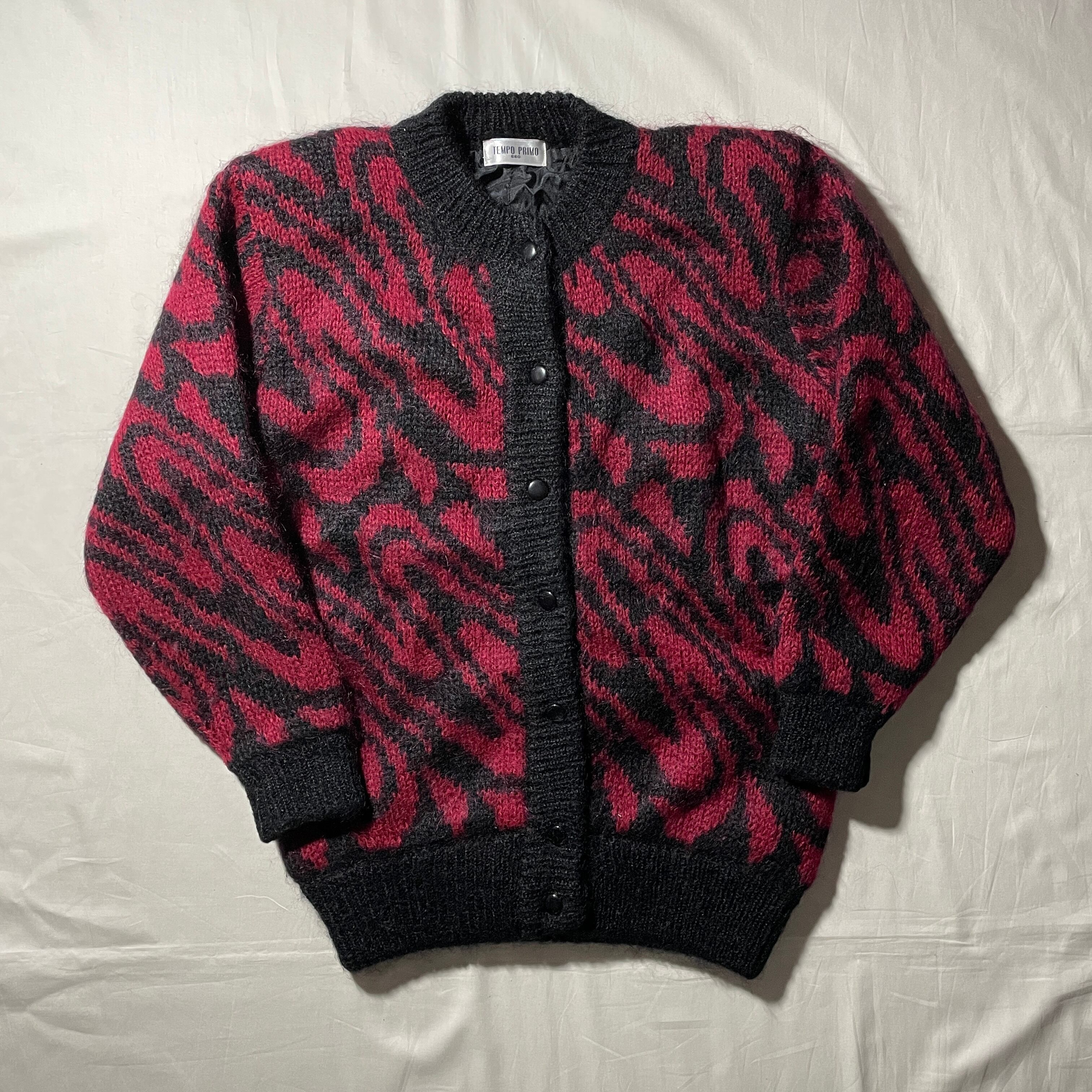 90s頃のヴィンテージカーディガン。ウール×アクリルの混合地でモヘアライクなデザインです。毒々しいカラーリングも珍しいと思います。