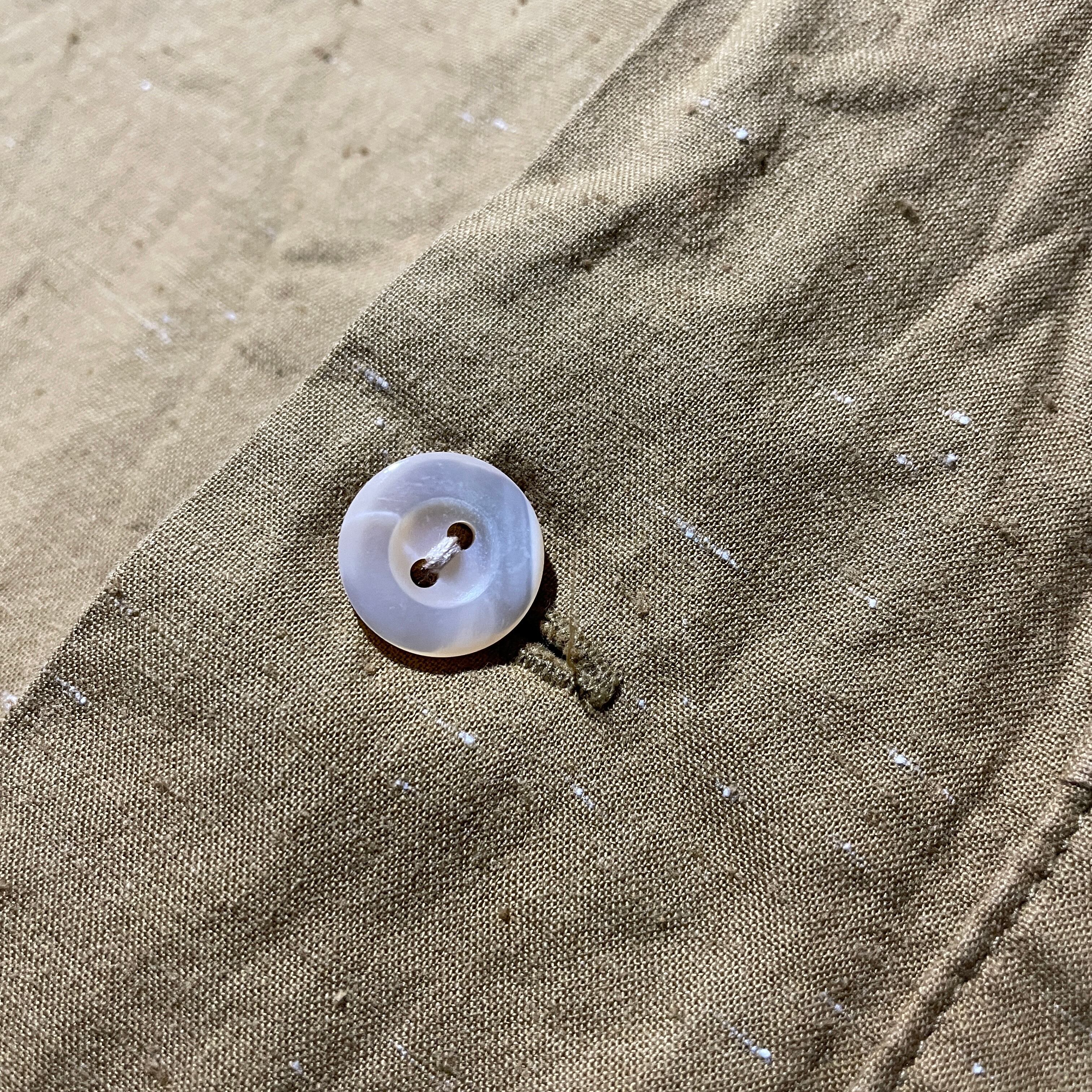 COOTIEのオープンカラーシャツ。50sのレーヨンシャツを彷彿とさせるロカビリライクな一着です。カラーはマスタード系のイエローでカスリが入ってます。