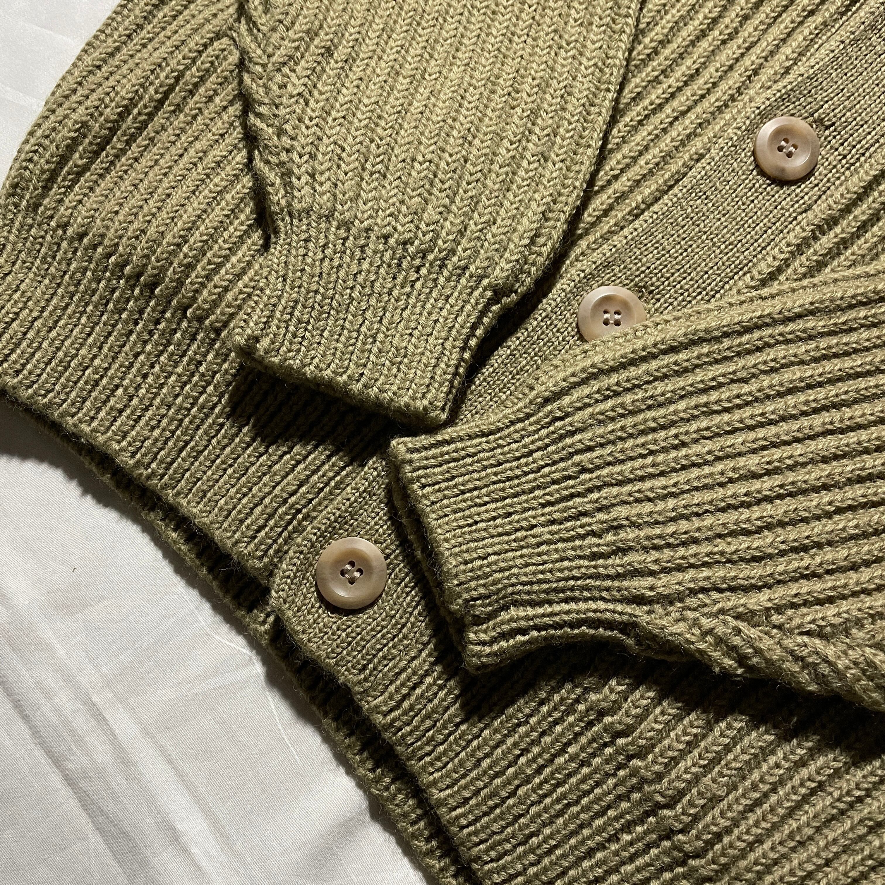 こちらは肉厚のウールを使用したカーディガン。ローゲージ編みでラルフなんかが作りそうな一着です。