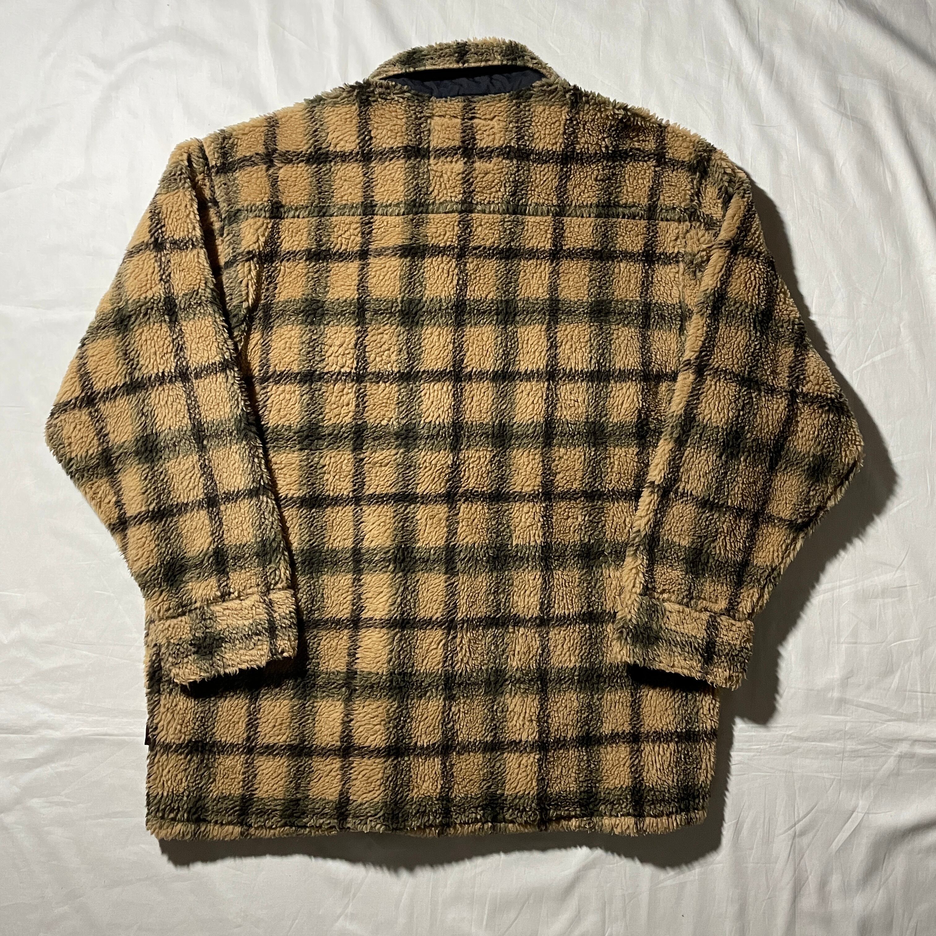 90s-00s頃のwoolrich。パタゴニアのレトロライクなフリースのパイル地のシャツジャケット。M表記ですが相当大きめの作りでメンズXLくらいあると思います。