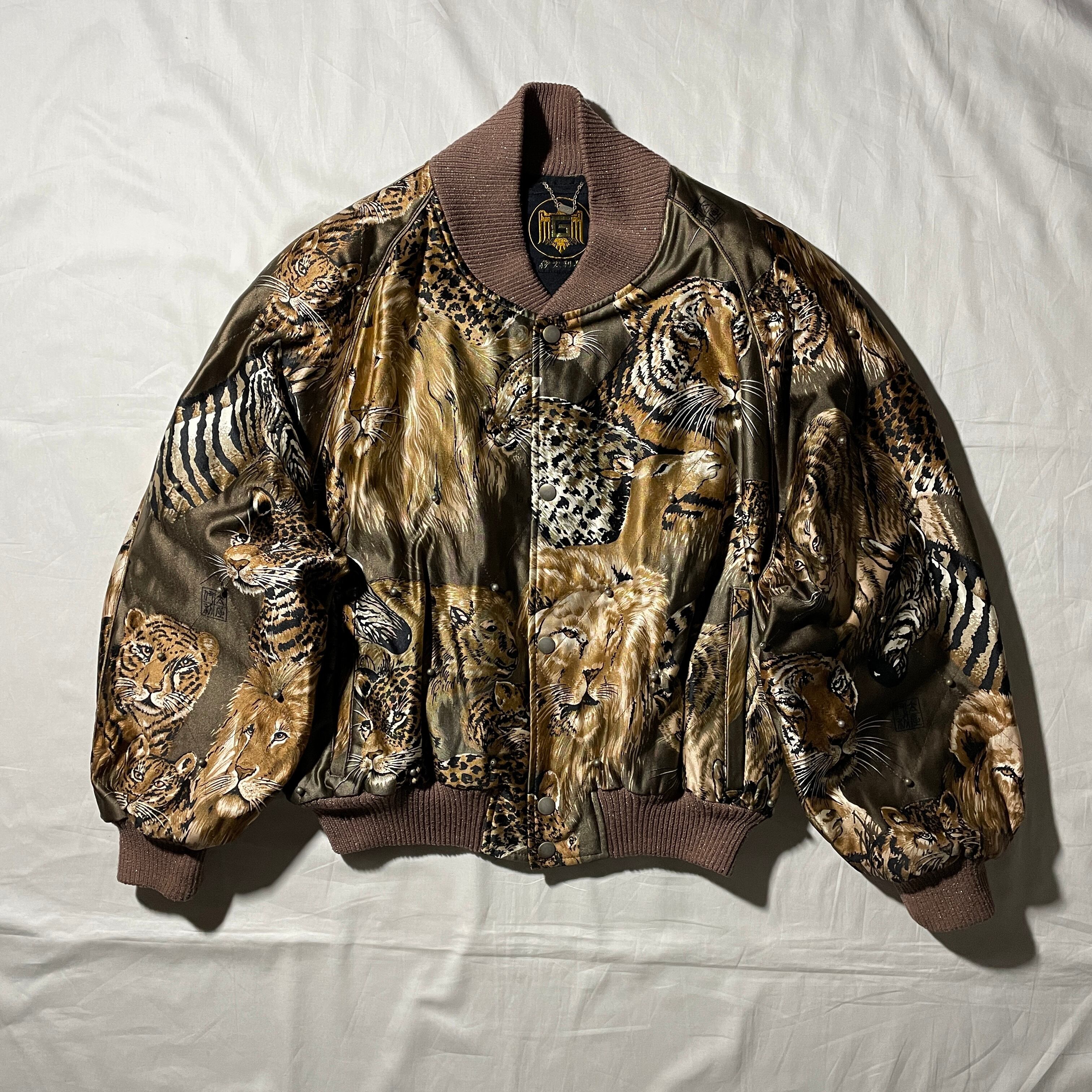 80s ヴィンテージブルゾン 総柄 虎 豹 ライオン 昭和レトロ
