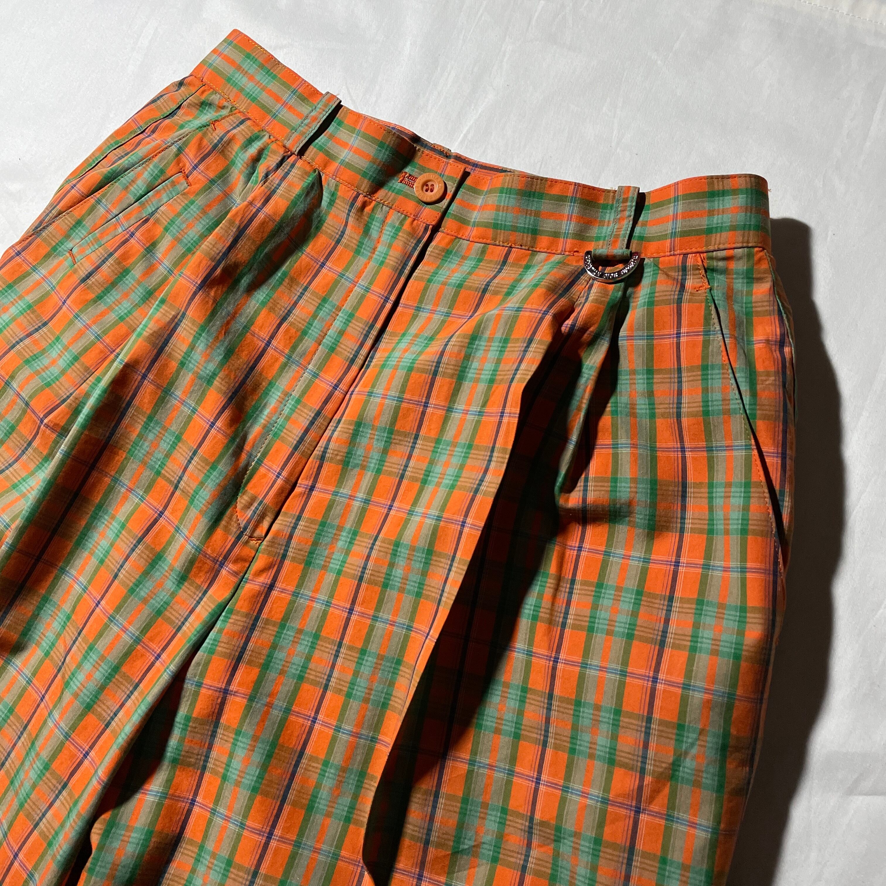 80s-90s頃のChristian Dior。チェックパターンの薄手のコットンスラックス。ハイウエストてテーパーがかった80s当時らしいシルエットは今のファッションに大分ハマるかと思います。