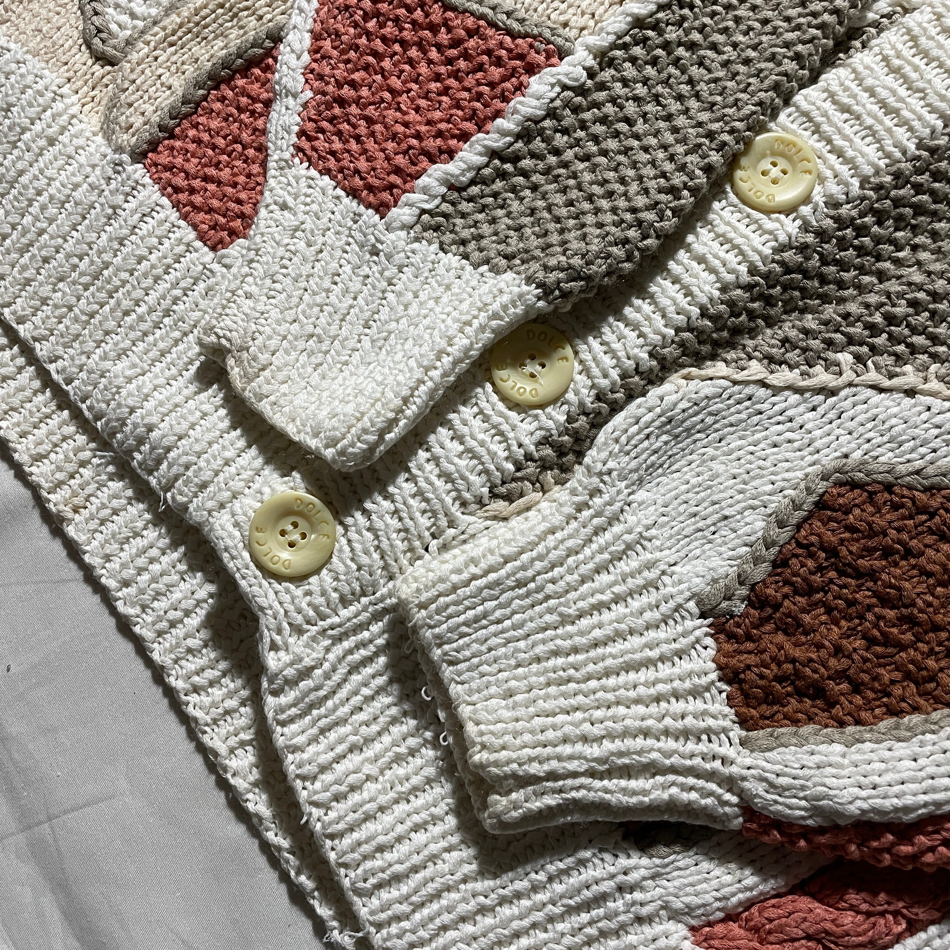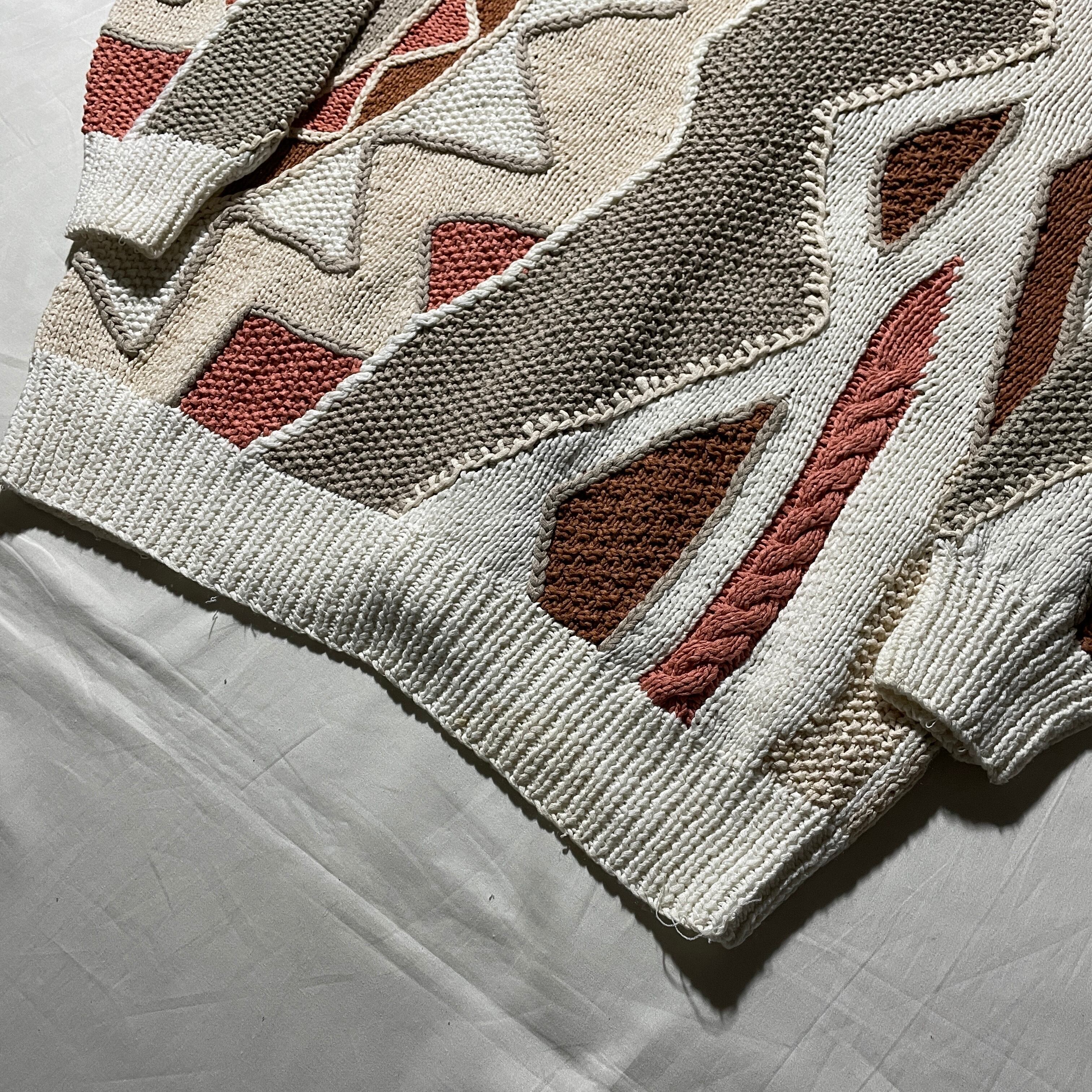 こちらはローゲージ編みの3Dコットンニット。暖色系の色味でビッグサイズなところも高ポイント。探すと中々出てこないgoodデザインの昭和レトロアイテムです。