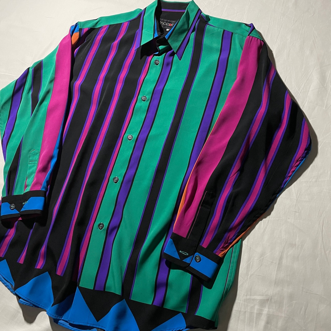 【美品】90s inception ポリシャツ ヴィンテージ マルチストライプ