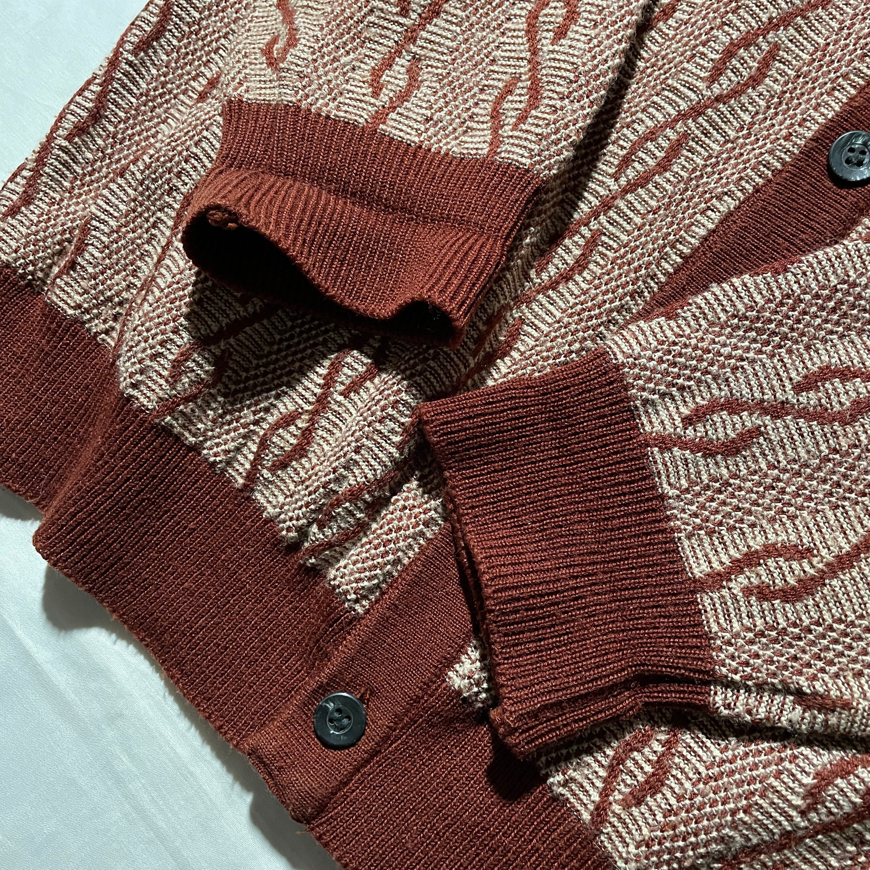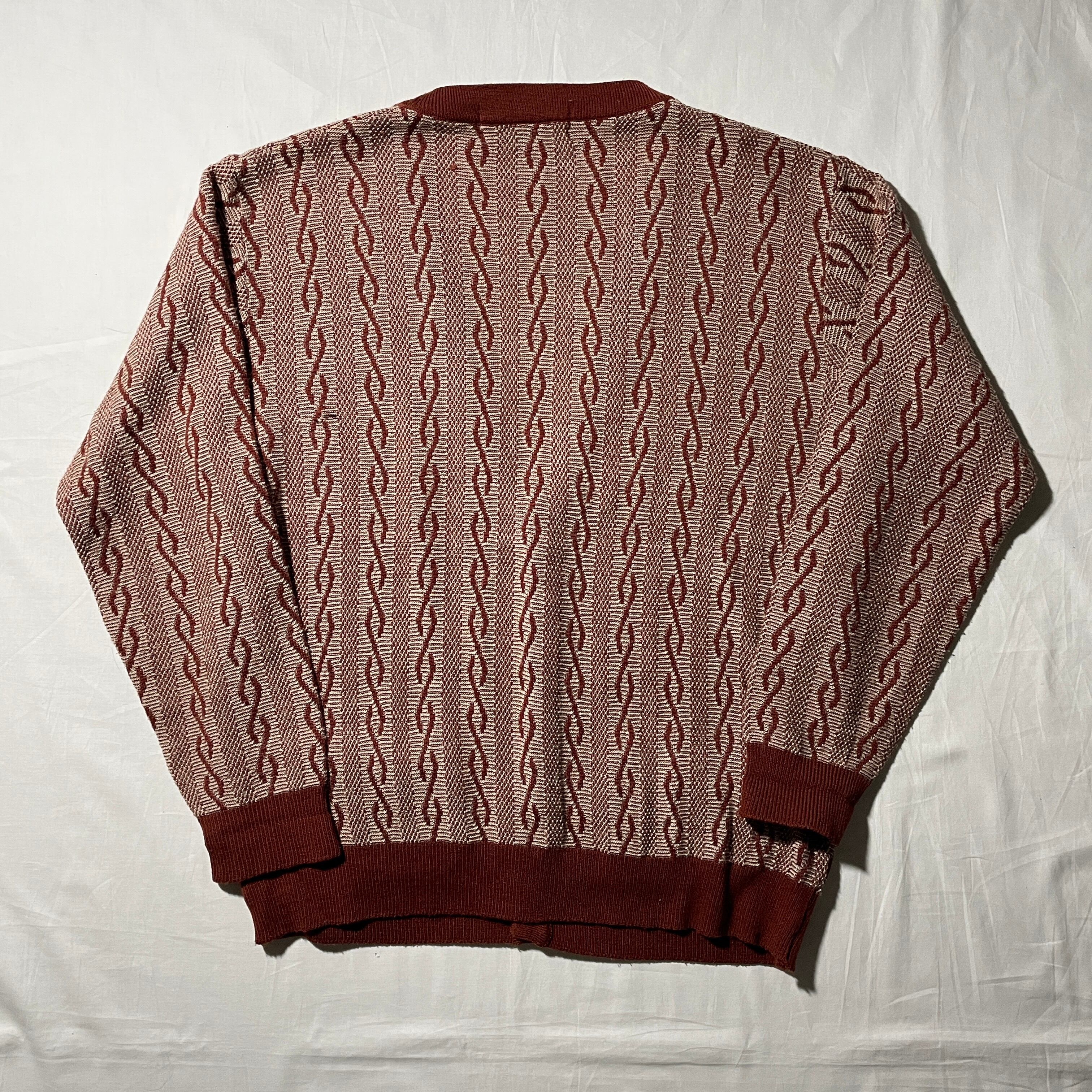80s頃のCORSICAという国産ブランド。非常にデザイン性の高いカーディガンで当時としては珍しいL-XL相当のビッグサイズ。