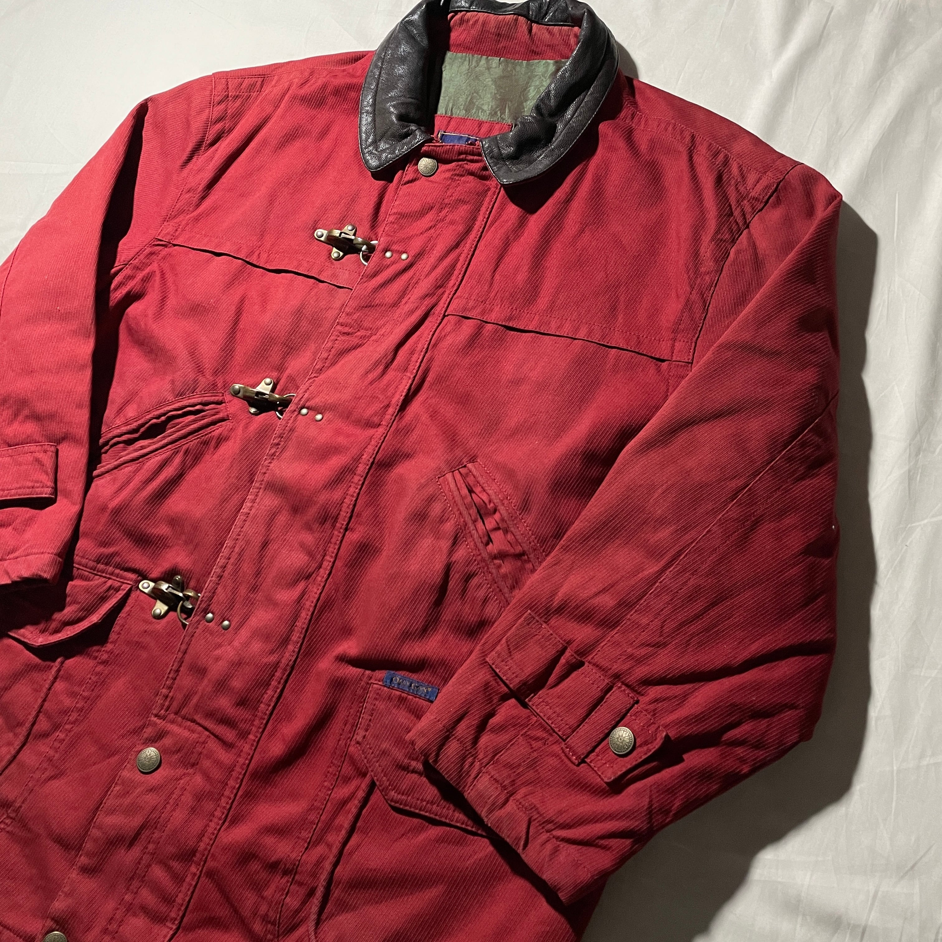 90s頃のOLLY GANというブランドのファイヤーマンコート。しっかりとしたコットン地にライナーはサテン張り。襟部分らレザー仕様になっており非常にクオリティの高いジャケットになっています。