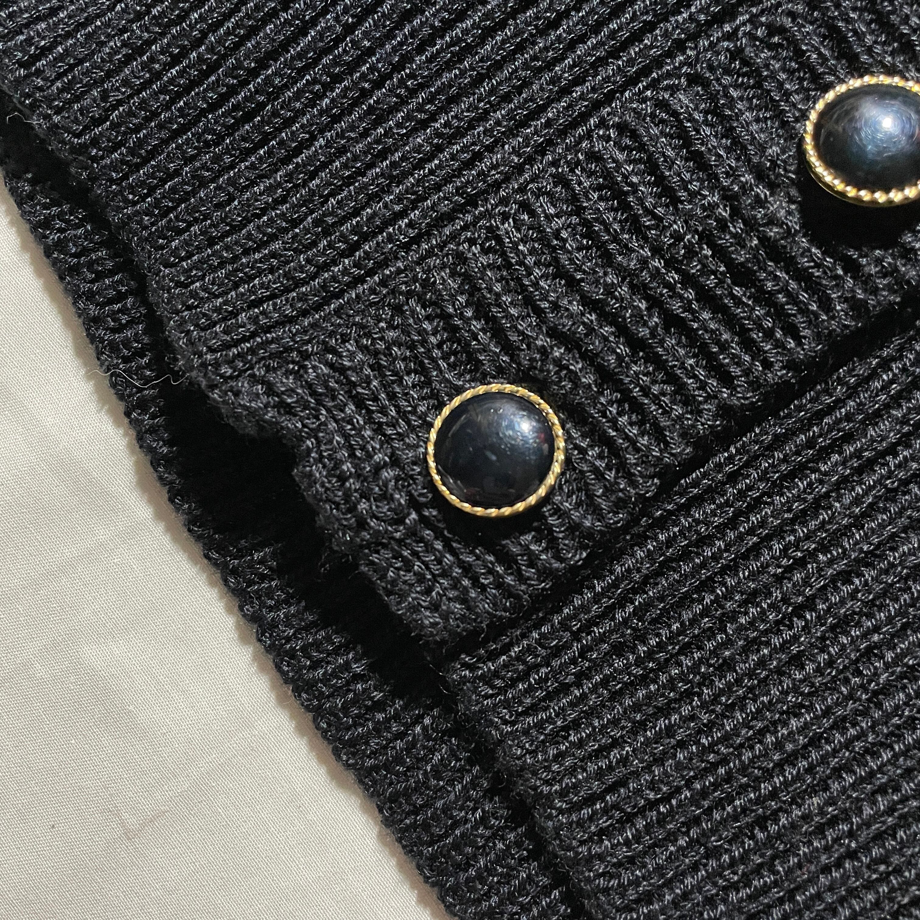 当時の新品タグ付きのアクリル×シルクのヴィンテージカーディガン。当時としては珍しいあまり手の加えられてないシンプルなデザイン。ブラックカラーでL相当とサイズ感も非常に良いと思います。