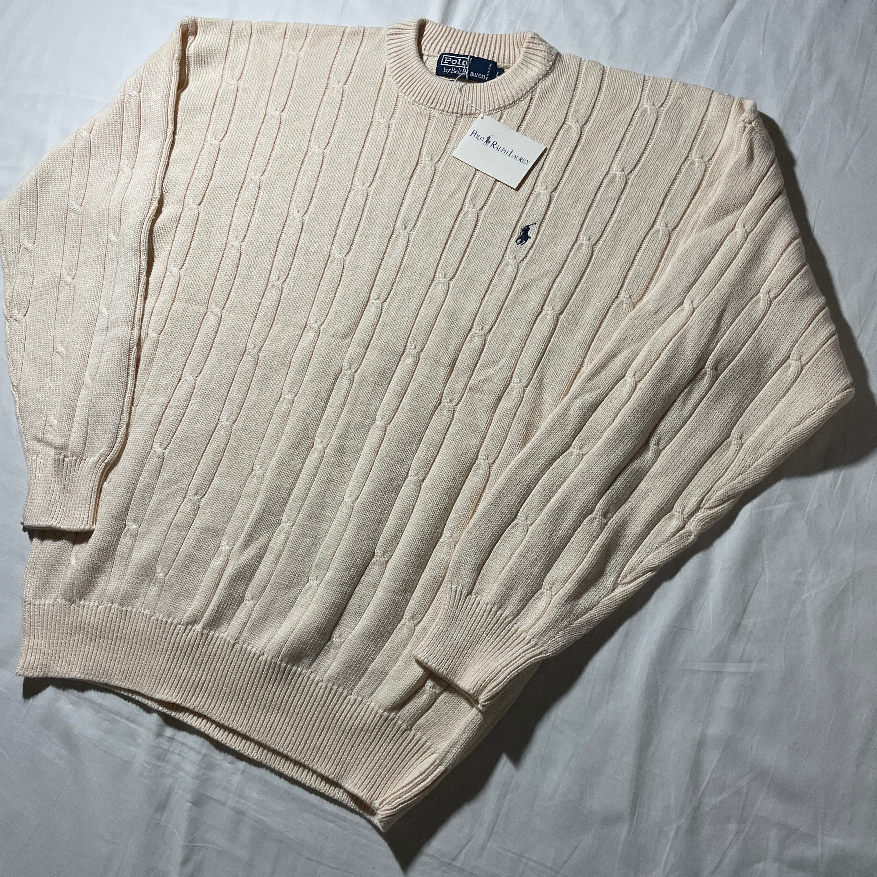 新品タグ付きのdeadstock。90s頃のPOLO by RALPH LAUREN。カラーはクリームでコットン100%です。
