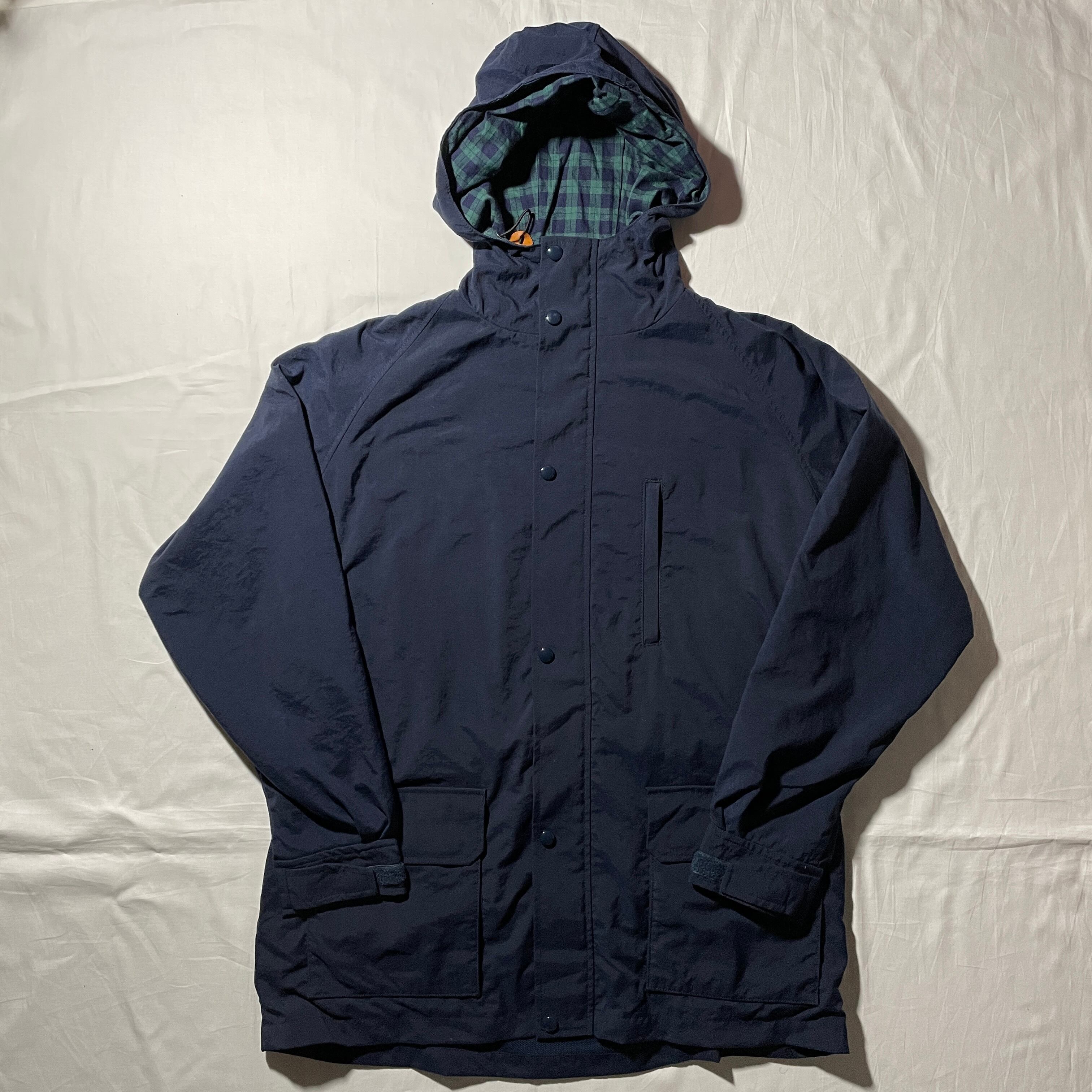 90s頃のVAN JACKET。ナイロン地のマウンテンパーカー。カラーは濃いネイビー。インナーはブラックウォッチライクなチェックパターンになってます。