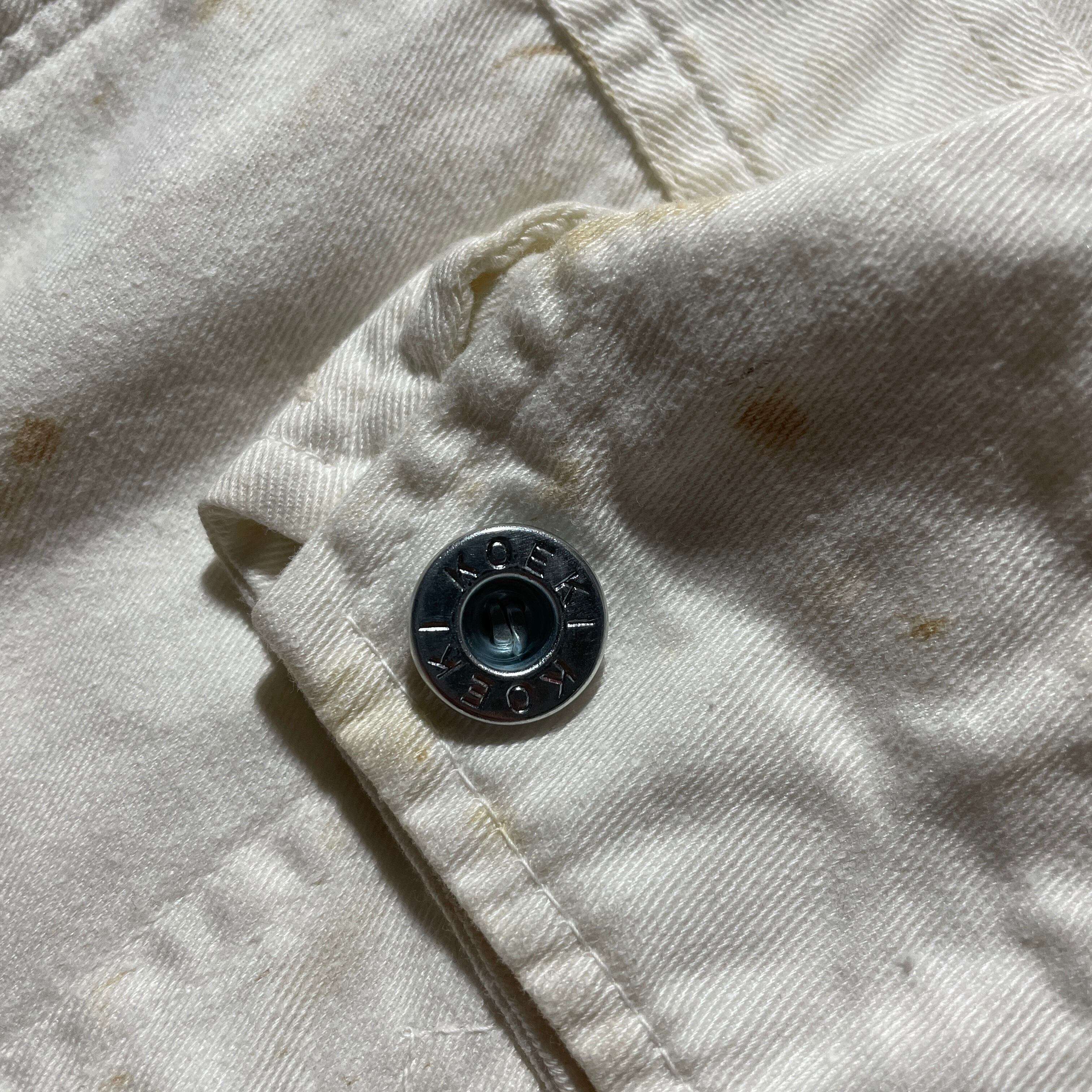 ボディはアメリカ製の対戦もののカバーオールやオールインワンに見られる簡素で薄手のコットン地。メタルボタンもそうですがアメリカの洋服に大分影響を受けている事が見て取れます。
