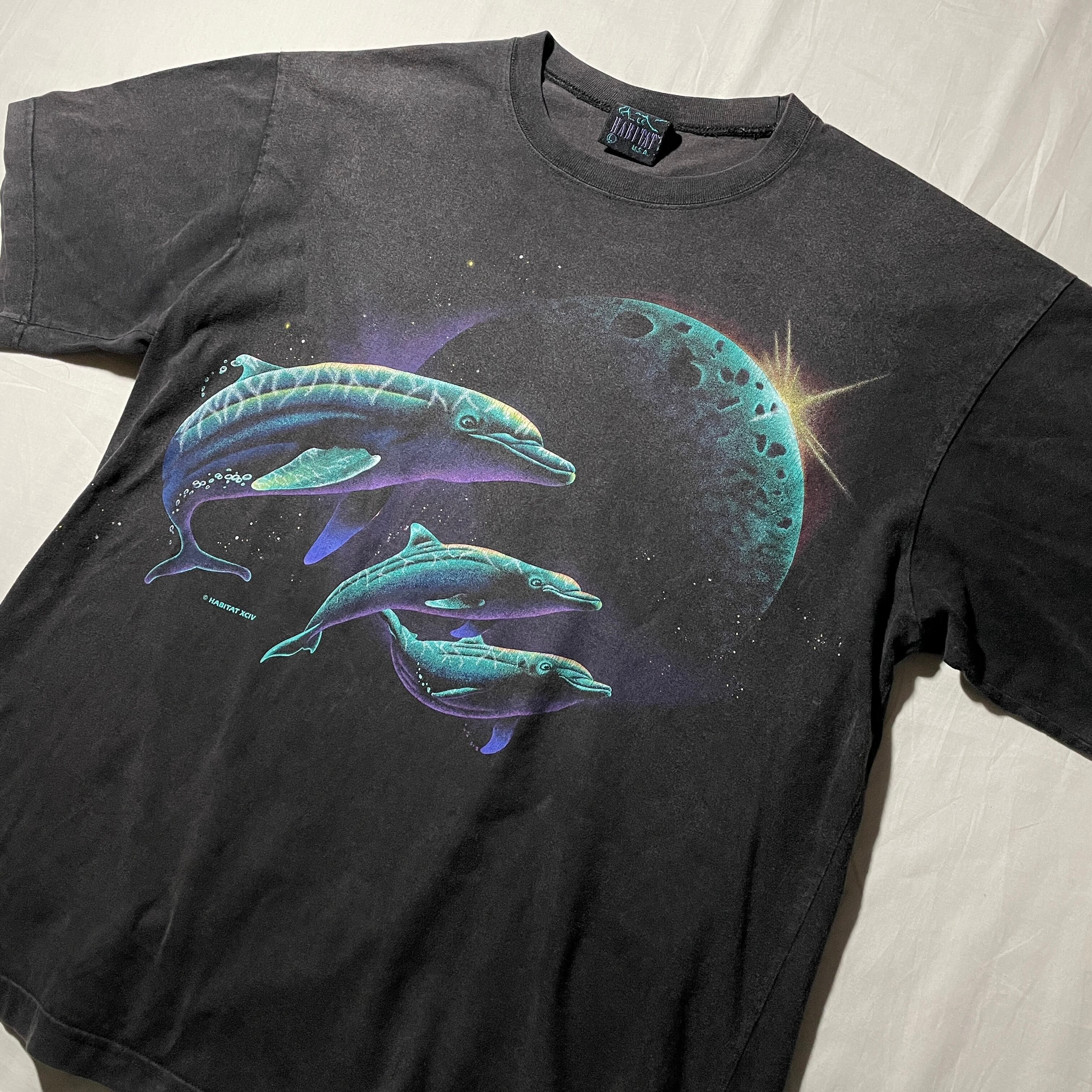 90s-00sあたりのヴィンテージT。イルカと宇宙。90sあたりでよく見るラッセン的デザインです。