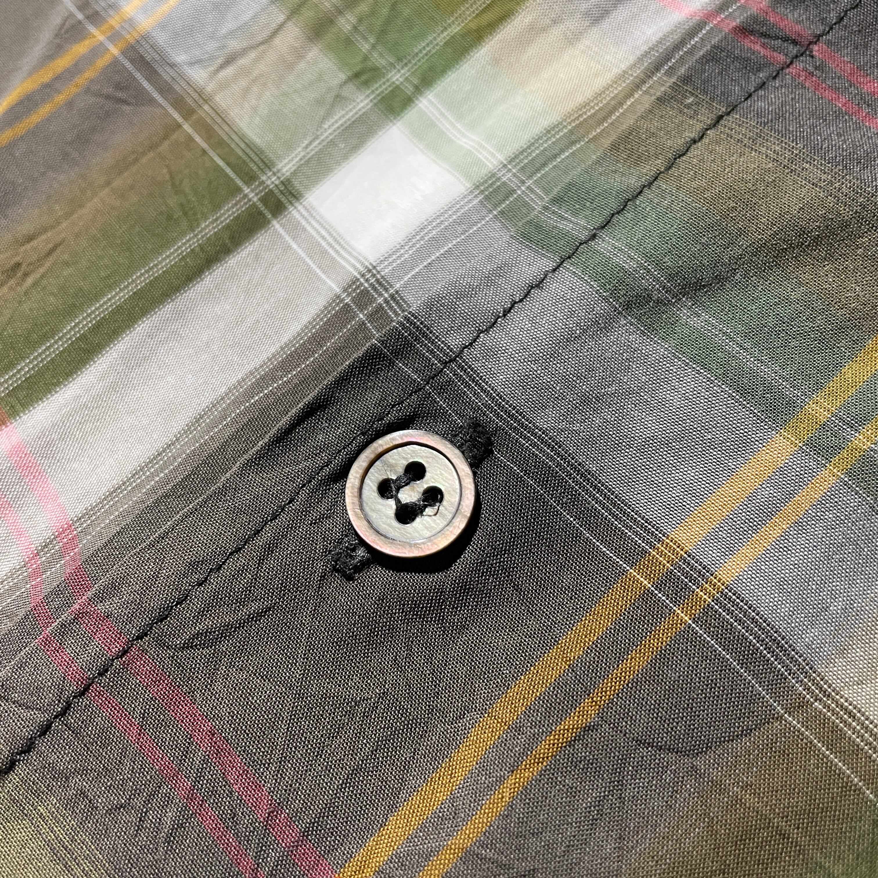 細部のディテールはISSEY MIYAKEのアイテムと遜色の無い作り。シャドーチェックのオープンカラーシャツは50s-60sあたりのヴィンテージを彷彿とさせます。