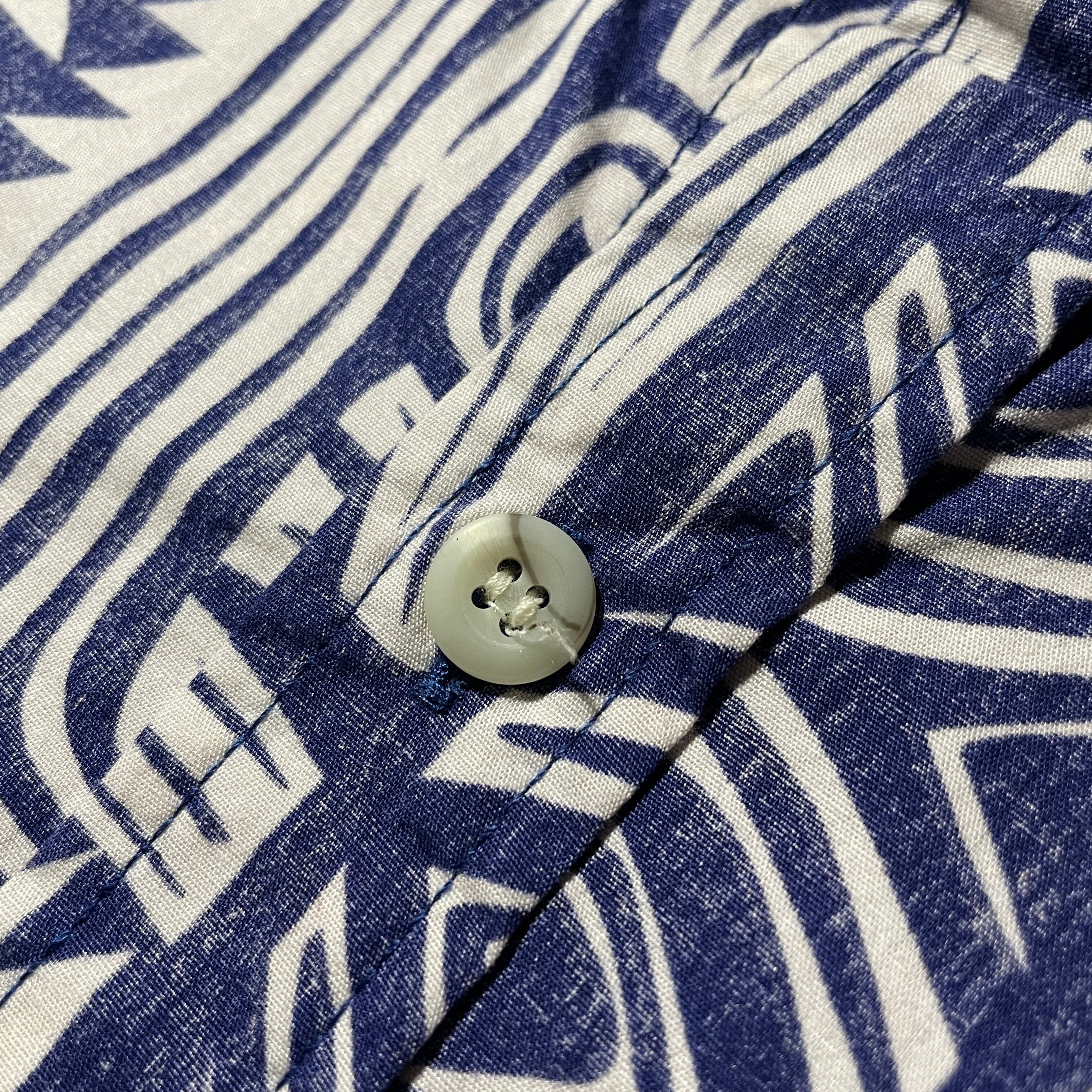 シルクアイテムの多いブランドですがこちらはコットン100%のアロハ。カラーはブルー。reyn spoonerの裏地アロハ的な感じでアロハが苦手な人にも着用しやすいデザインかと。