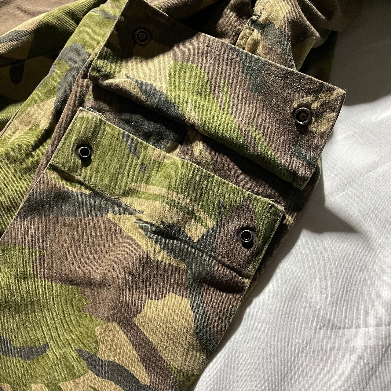 オランダ軍で実際に使用されていたカーゴパンツ。アメリカ軍のウッドランドカモとフランス軍のリザードカモを足したような独特なカモフラ。色味なんかはフランス軍っぽいです。