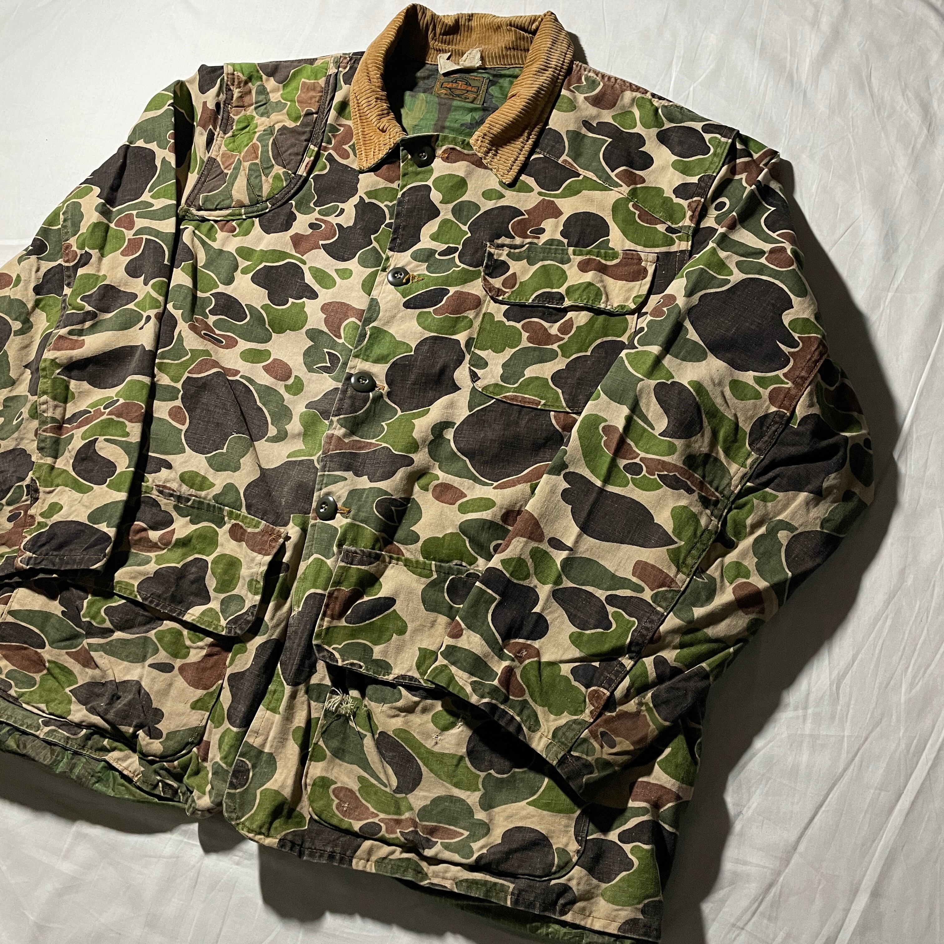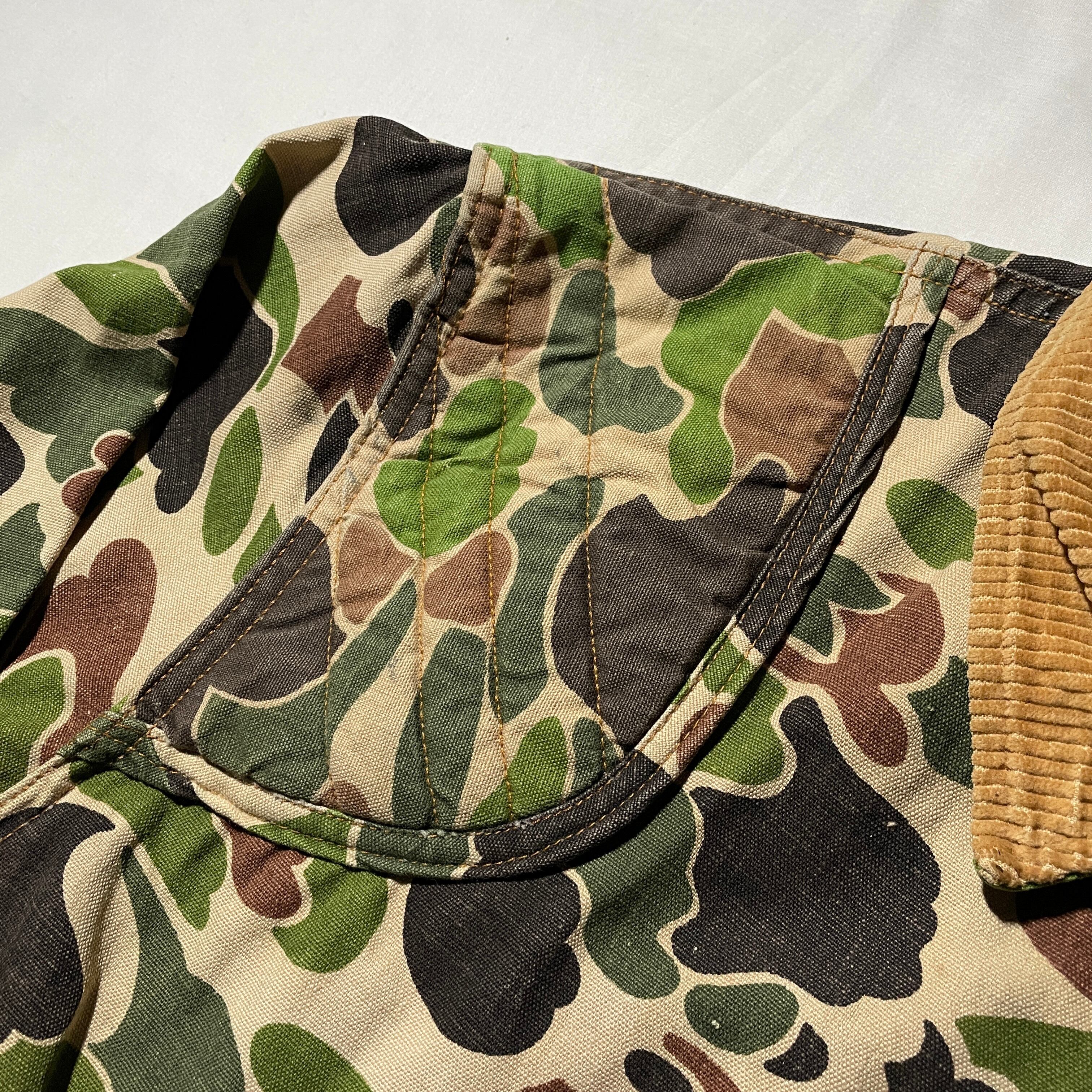 60s-70s初期頃のハンティングジャケットの老舗SAFTBAK。ダックハンターカモパターンで薄手のコットン地。内側のゲームポケットは硬めのナイロンになってます。
