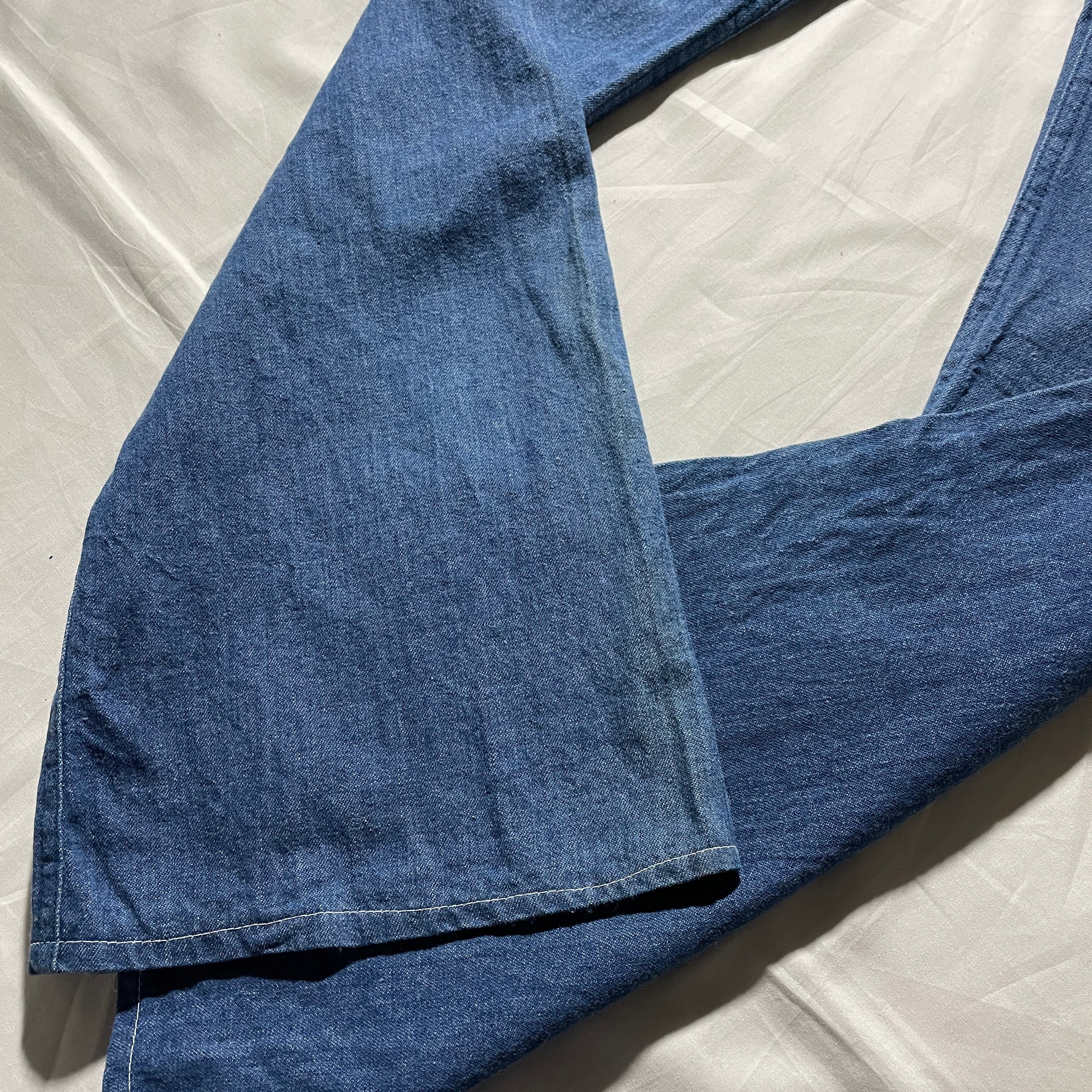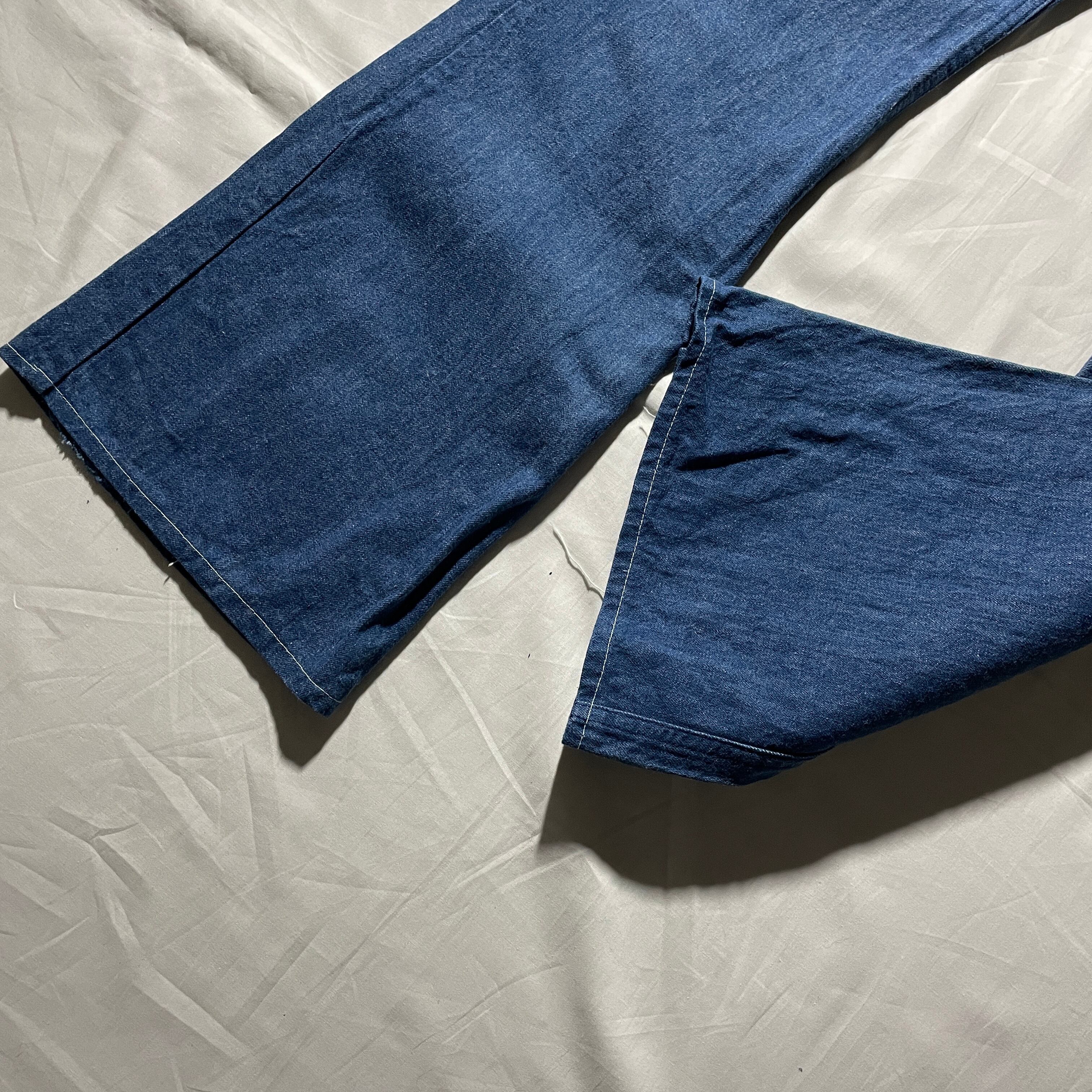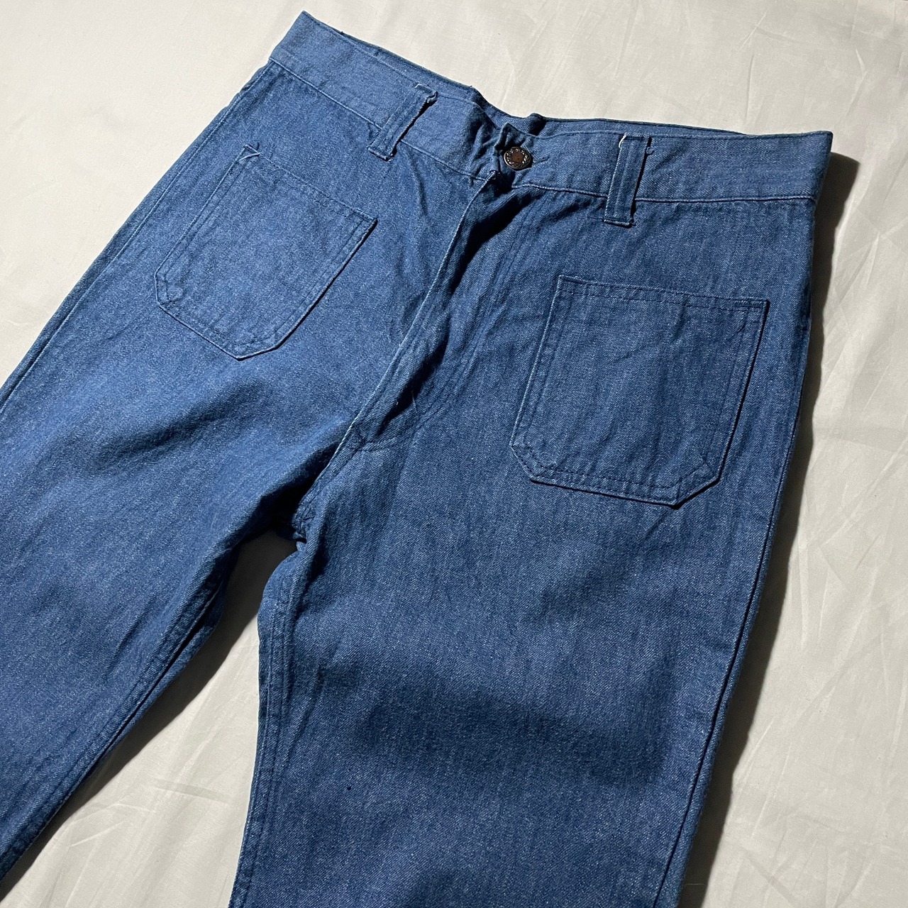 70s-80s頃の国産ブランド。US NAVYのデッキパンツとほぼ同じ作りのフレアパンツです。品質表示のタグは欠損していますが日本製で間違いないかと思います。