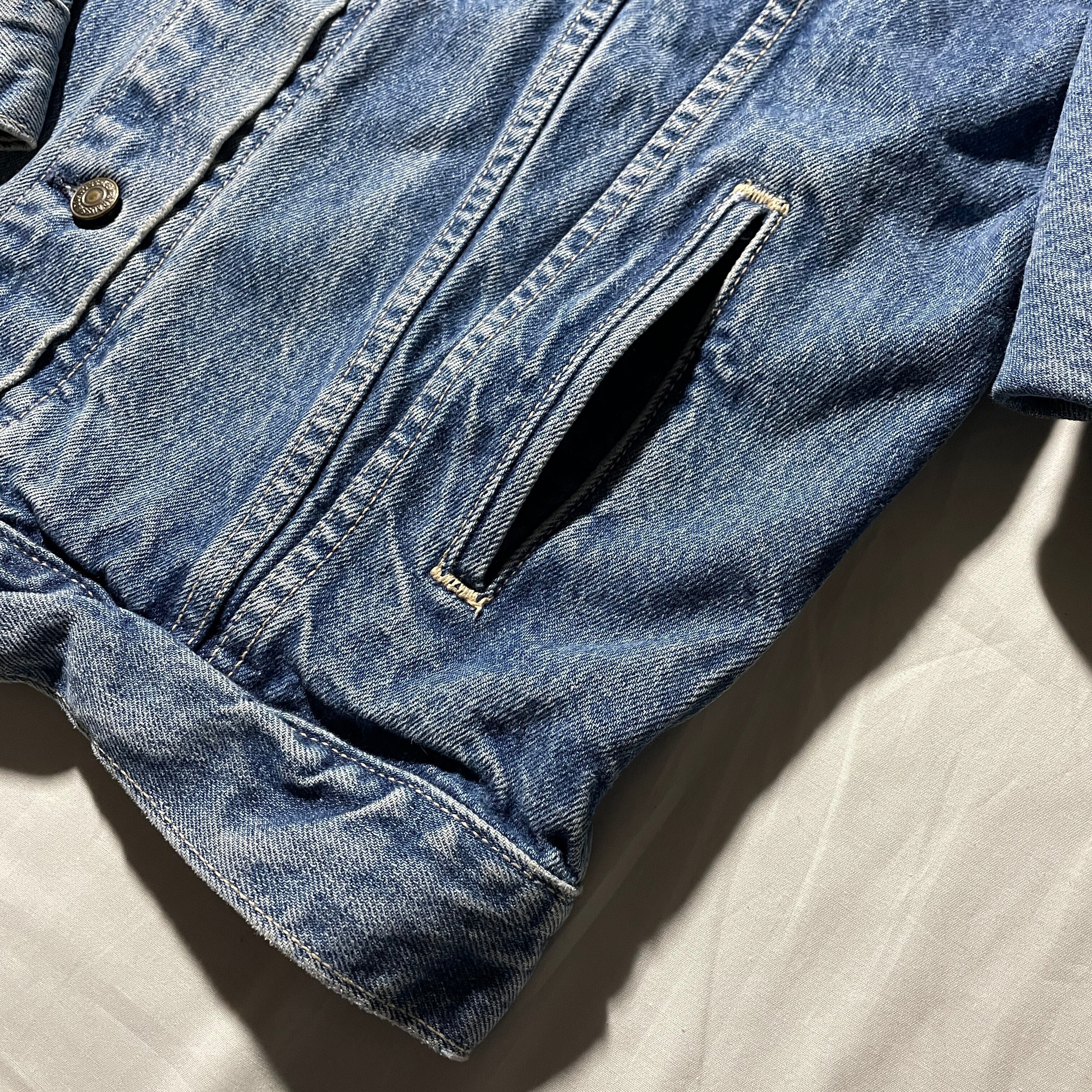 87s Levi’s77930-7203。ポケット付きのレディースモデルで70506よりも丈が長めで袖はやや短めの作りです。