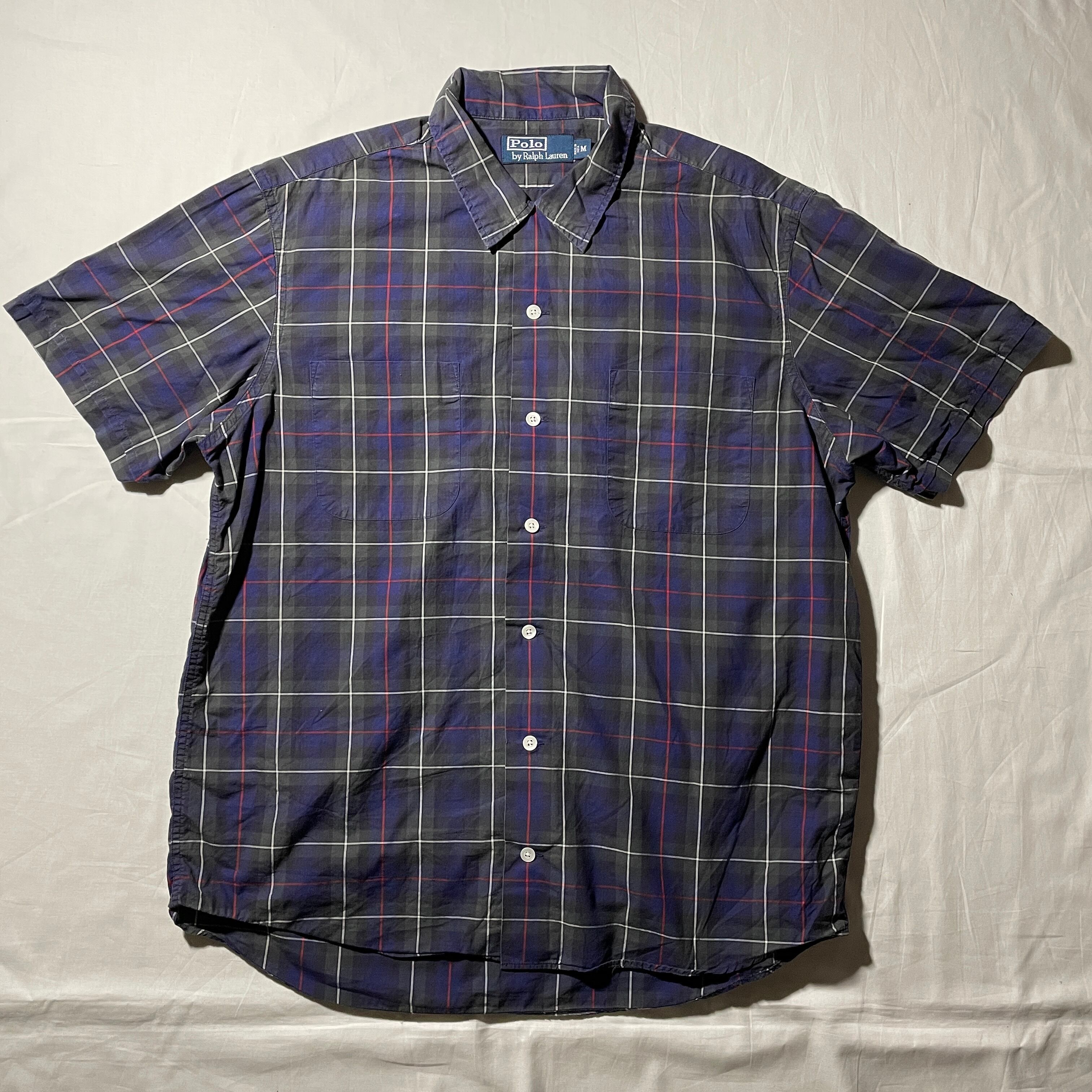 90s頃のヴィンテージPRL。ラルフ定番のブラックウォッチパターンのオープンカラーシャツ。今期ドンピシャトレンドかと思います。