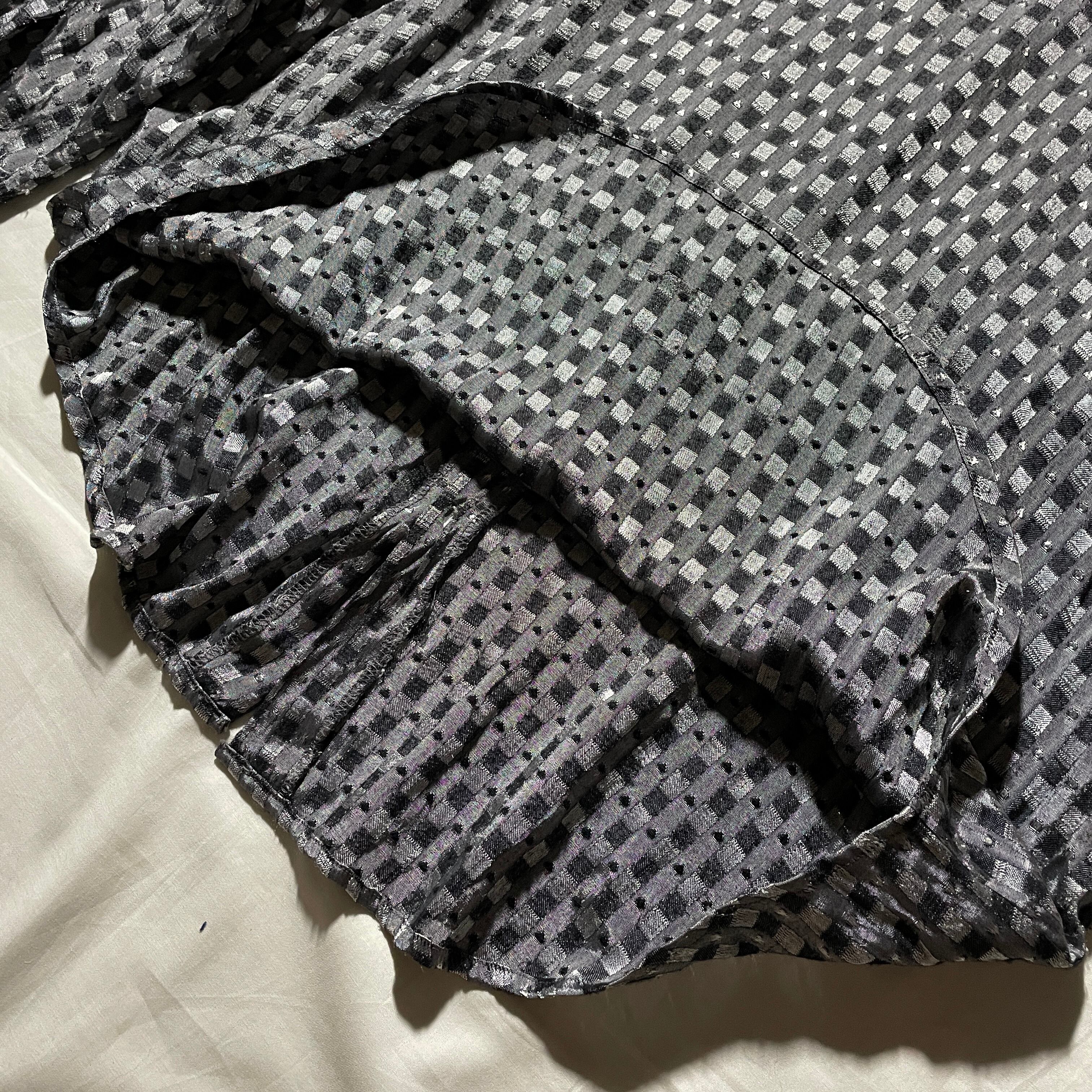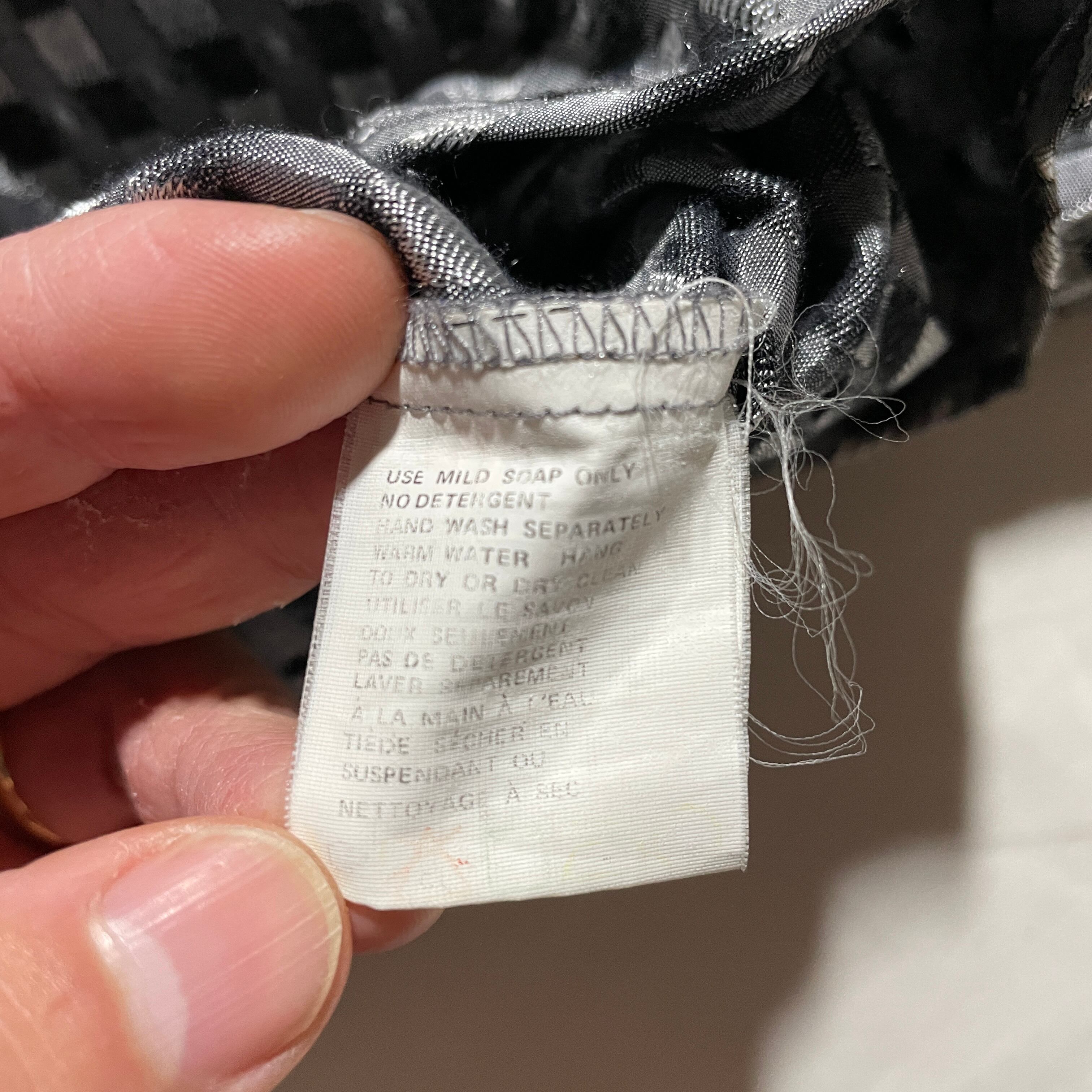 非常に手の込んだデザインでポリエステルやレーヨンの様なトロミのある質感。フロントのポケットがこの年代でフラップ仕様になっているのも一癖あります。