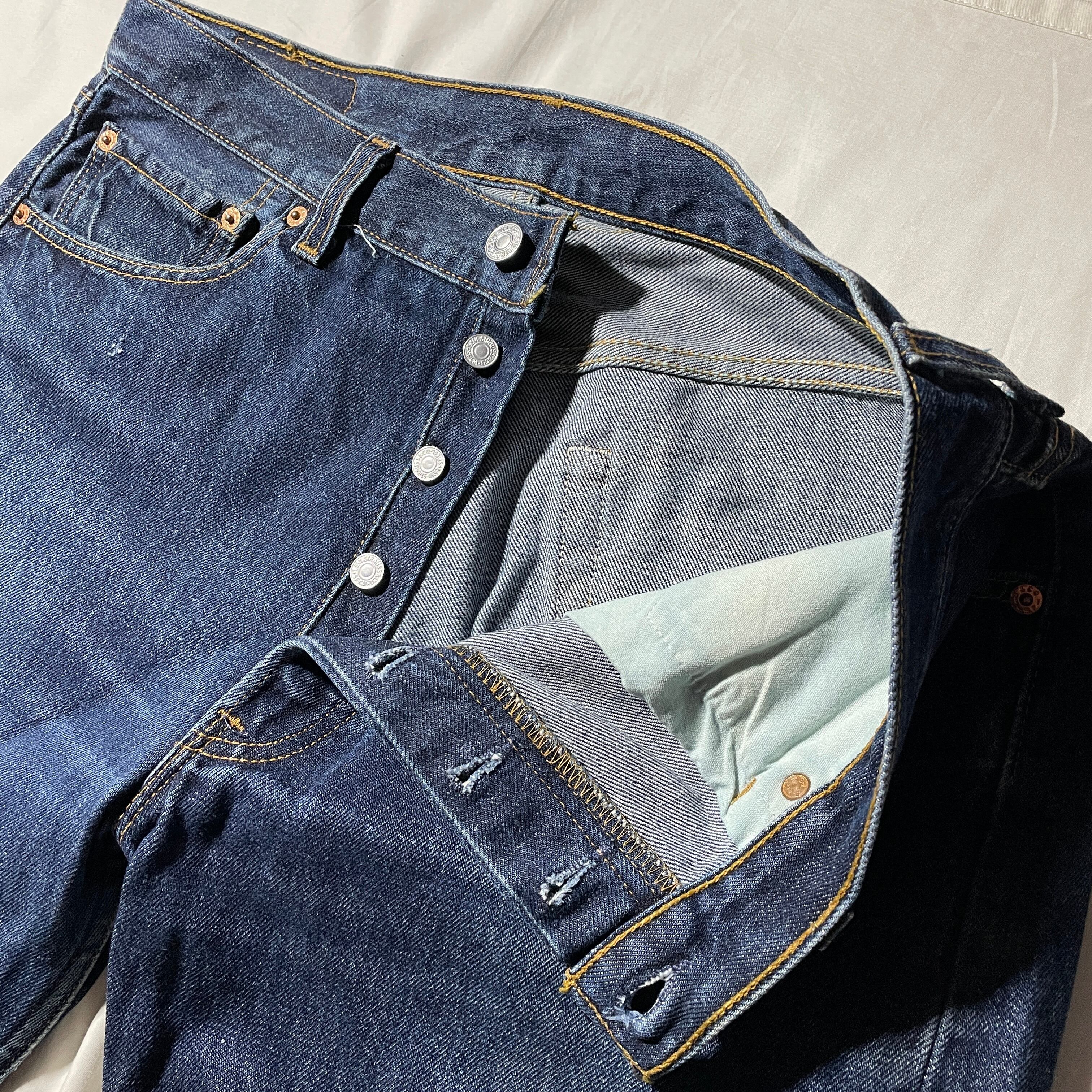 98sのLevi’s501。トップボタン裏546、色残り80%以上でうっすらとアタリ、ハチノス出てきてます。