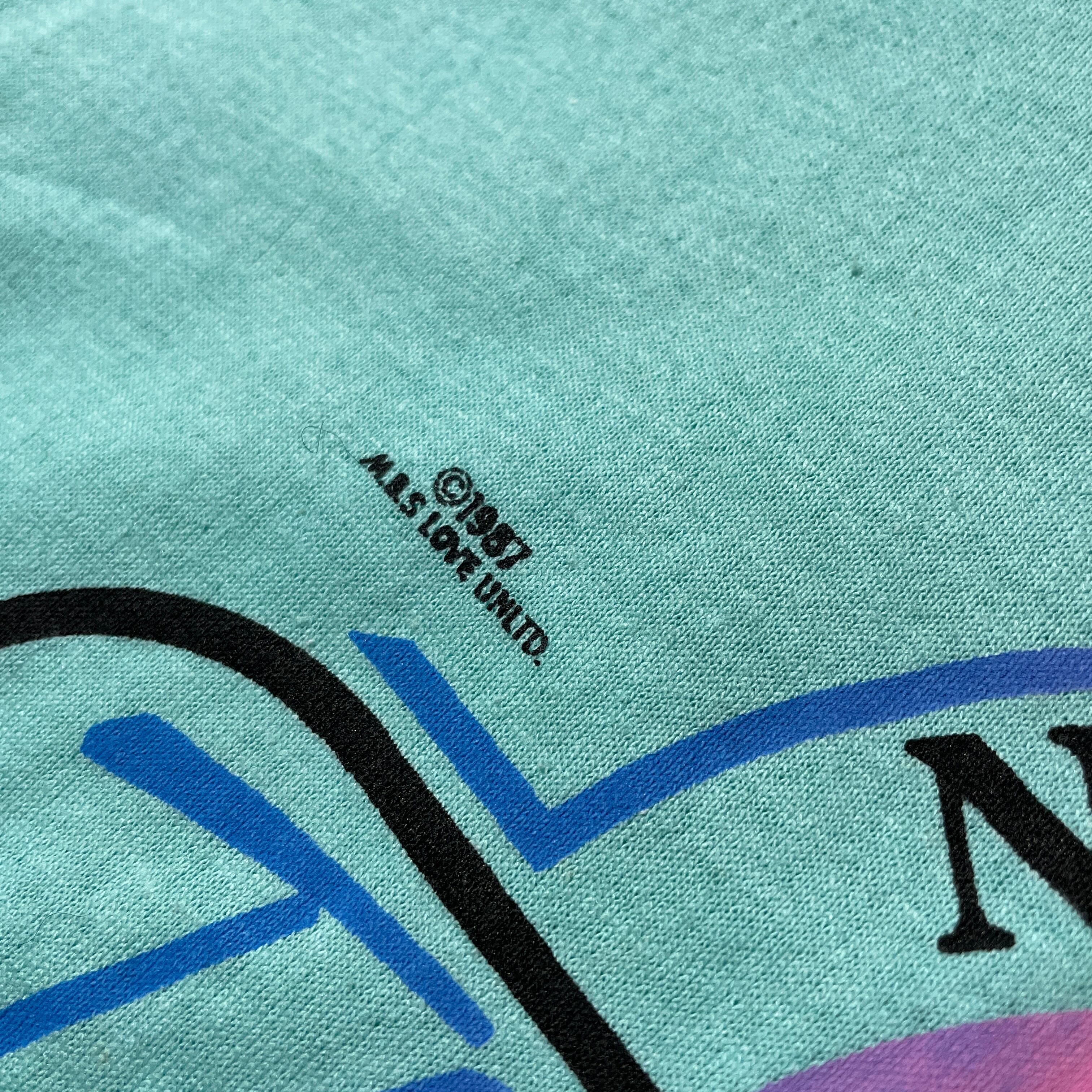 87sのコピーライト入り。当時のNEW YORKのギフトTかと思います。80sらしいポリ×コットン地の柔らかい肌触り。カラーリング、デザイン共にシティポップ感あってgoodです。