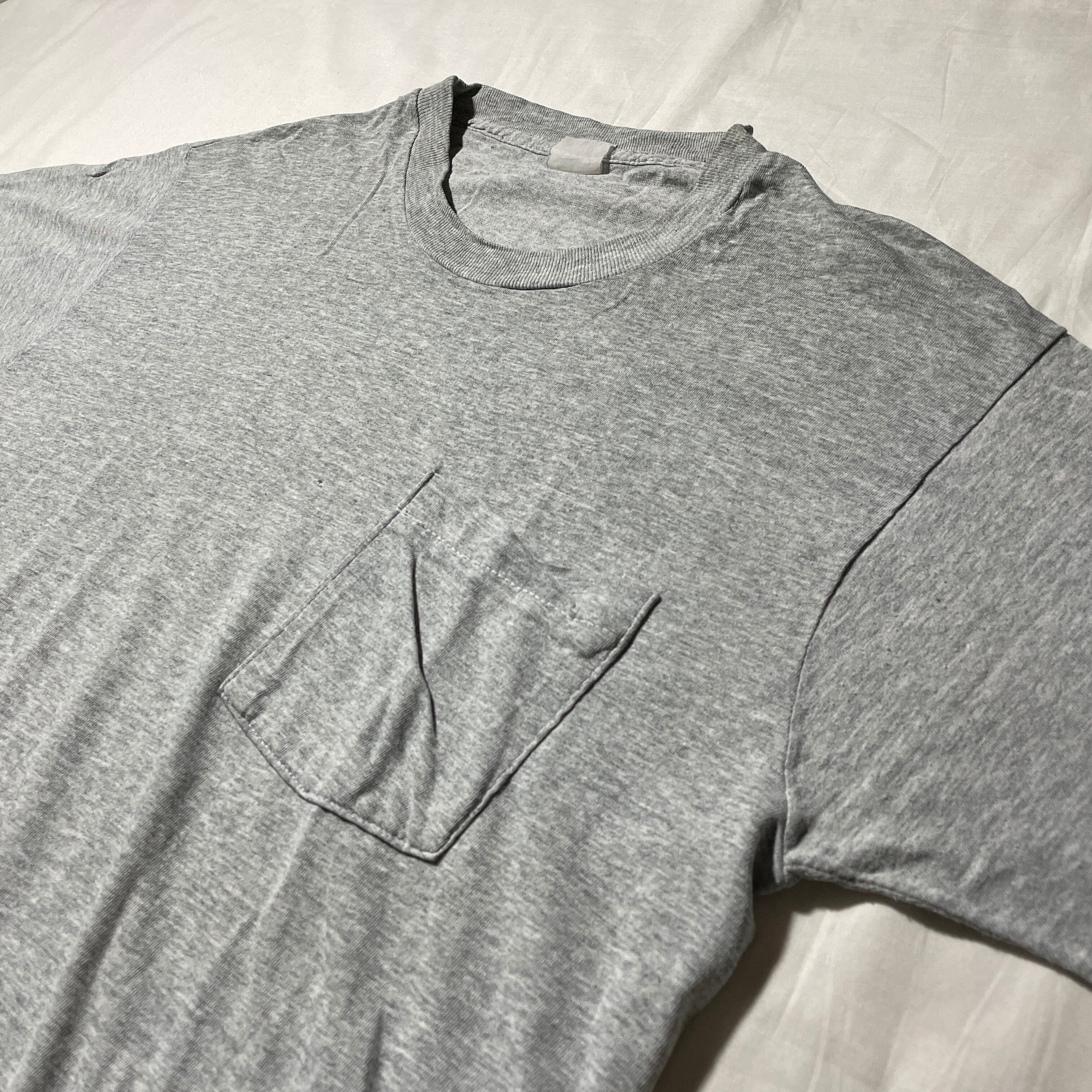 80s-90s頃のヴィンテージポケットT。杢グレーボディでサイズ感的にはL相当。タグの印字は消えていますがアメリカ製で間違いないと思います。