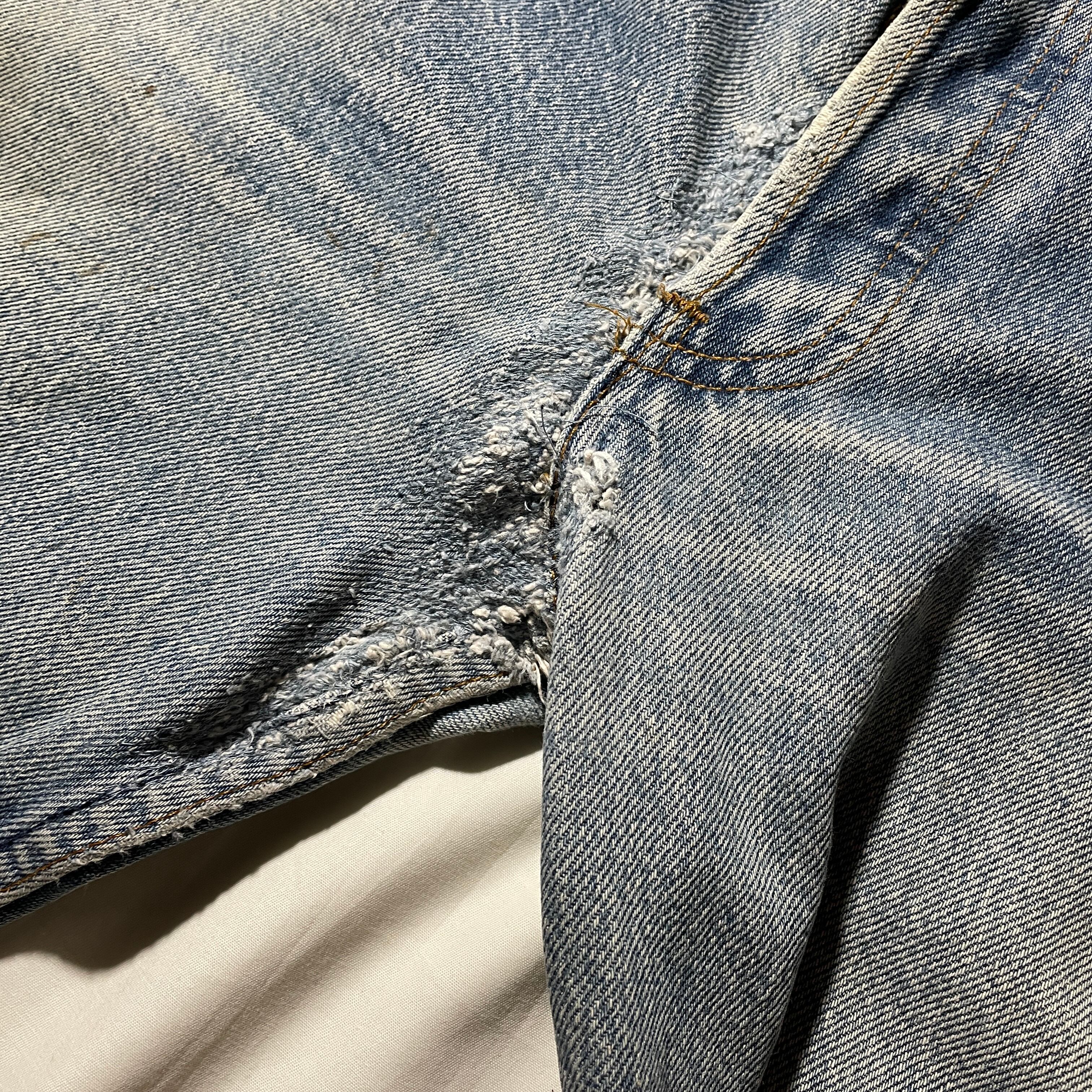 90s Levi’s501。ヴィンテージのリーバイスらしい黄色味がかった色落ち。