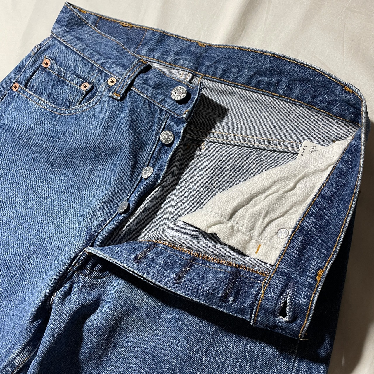 90s、恐らく91sのLevi’s501。トップボタン裏555のバレンシア工場製。