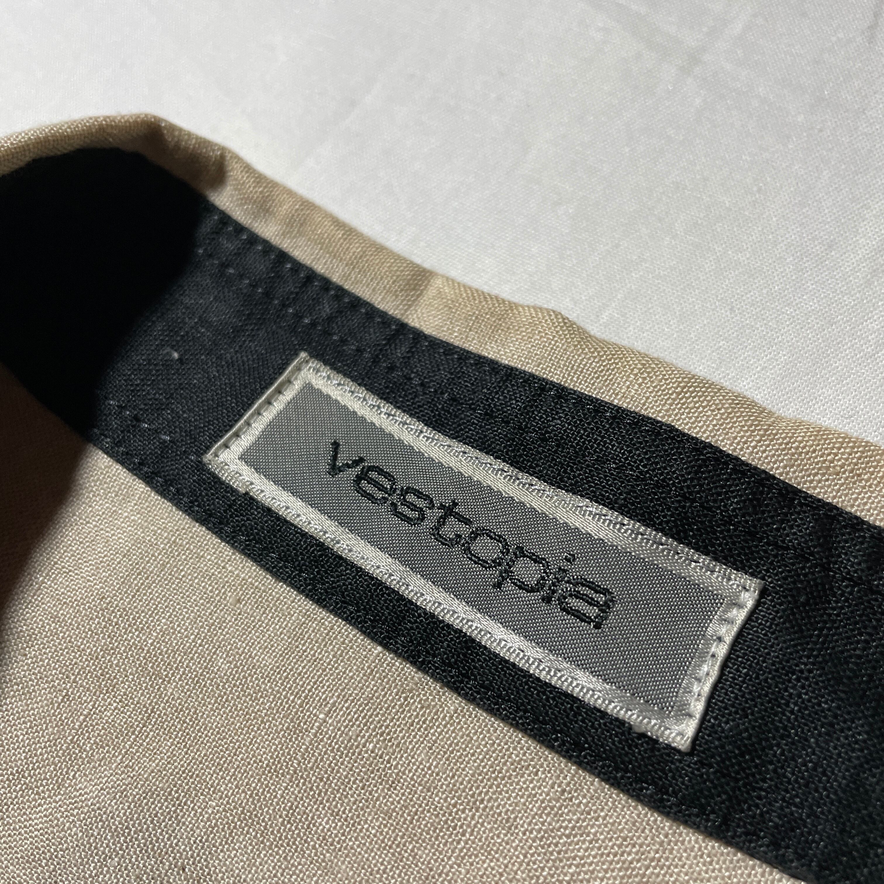 80s頃のVESTOPIAという国産ブランド。リネン100%の生地に貝ボタンと洋服としてのクオリティは非常に高く、ベージュとブラックのカラーリングもロカビリライクでgoodです。