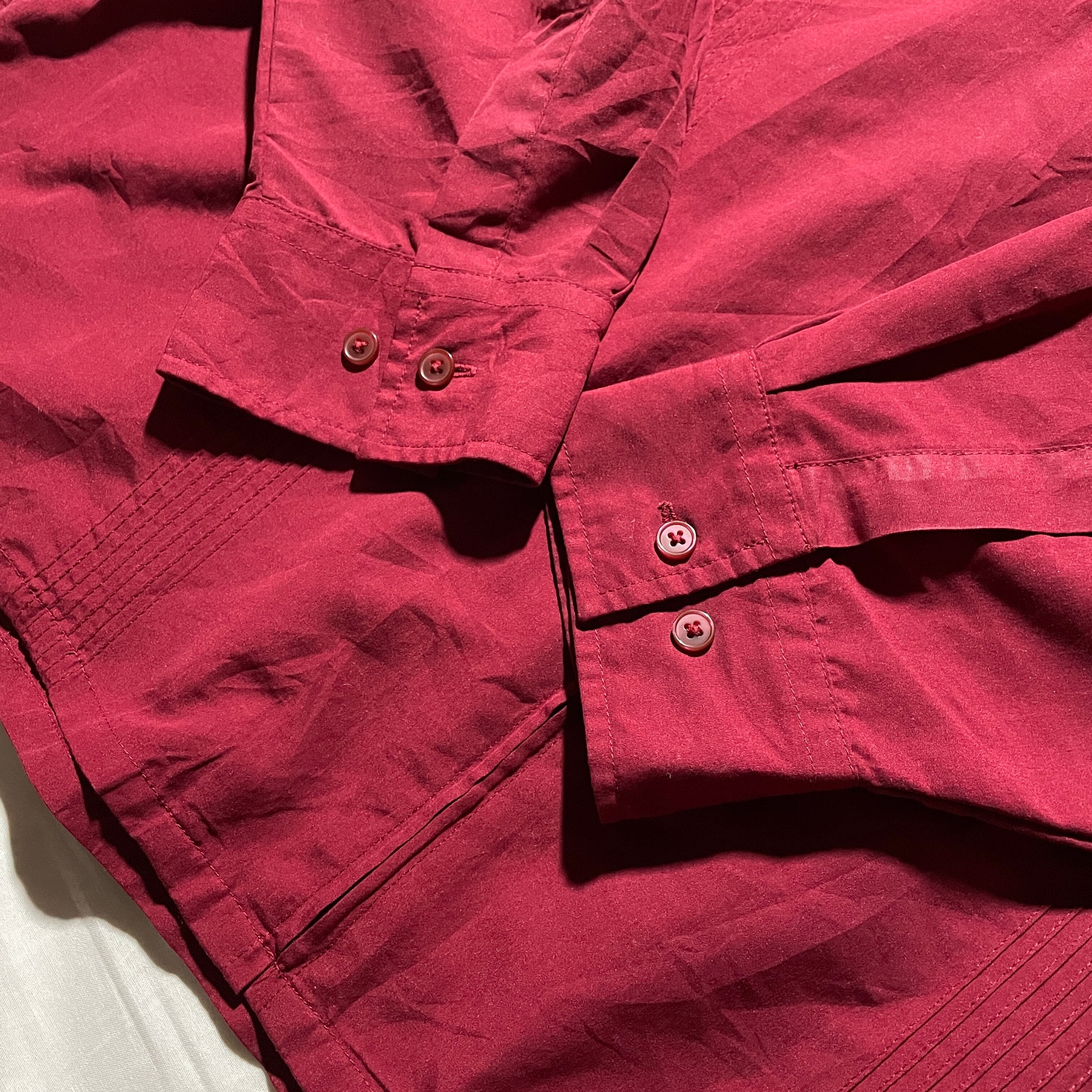 こちらはフルジップのポリエステルシャツ。キューバシャツライクなデザインでボックスシルエット。両サイドポケット付きも高ポイントです。