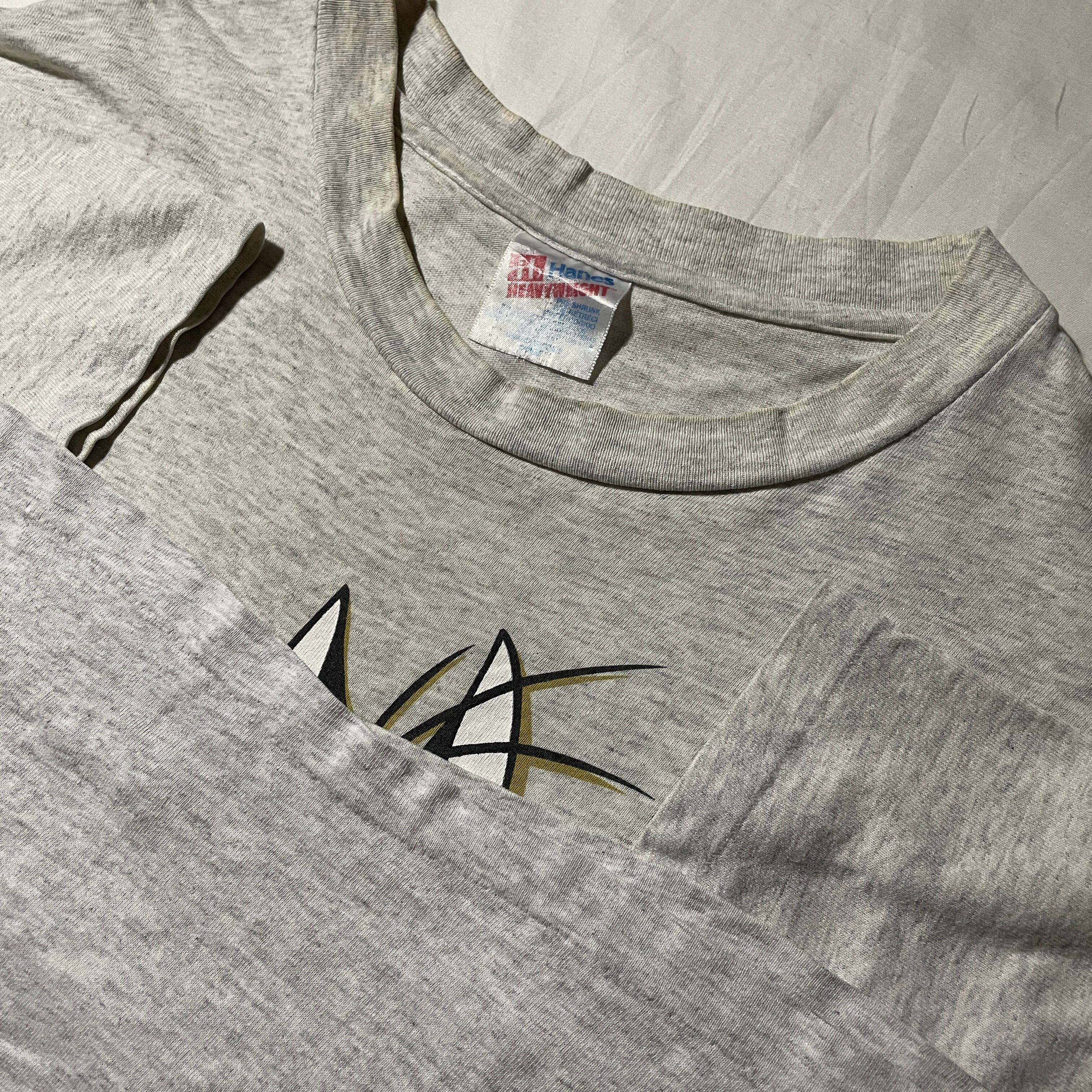 フロント、バックにプリントが入るgoodデザイン。ヴィンテージ特有の使用感はありますが古着慣れされていれば問題無く着用可能なコンディションです。