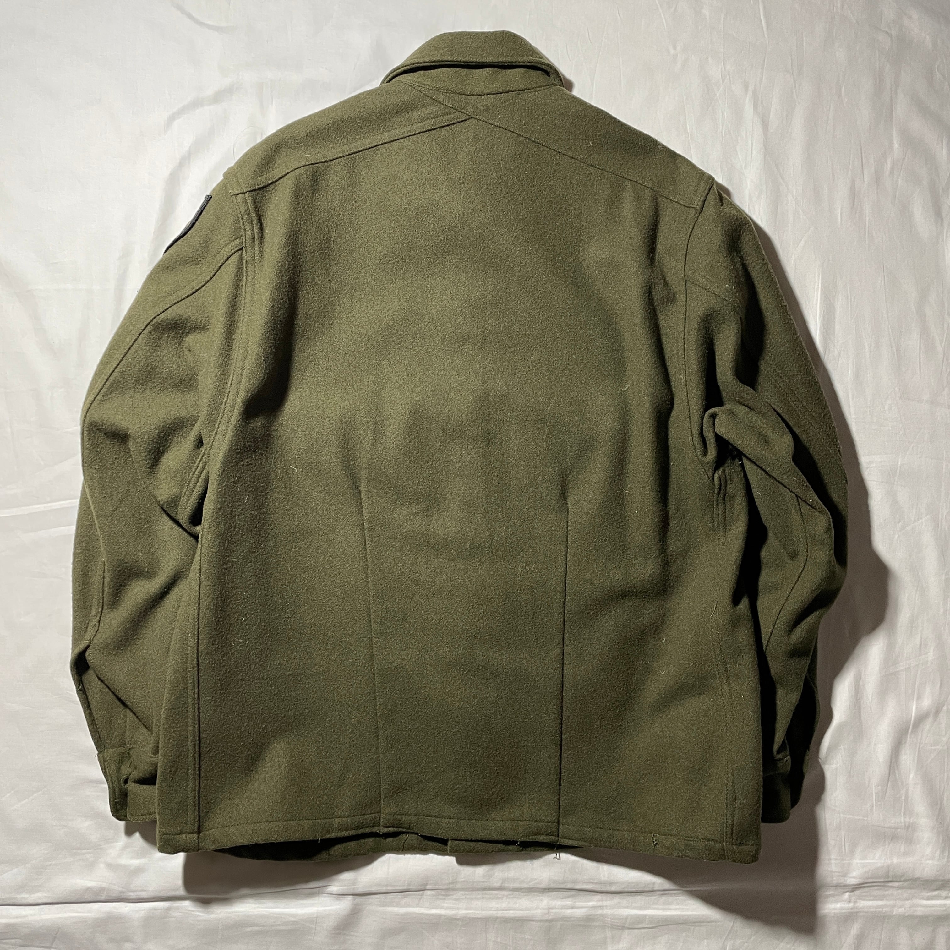 1950s-頃のUS ARMY ウールシャツタイプのジャケット。50sから始まる朝鮮戦争の際に支給されたフィールドジャケットです。背中のバックヨークが斜めに入る個性的なデザイン。あまりないですよね。フロントの大きめポケットもカッコいいです。