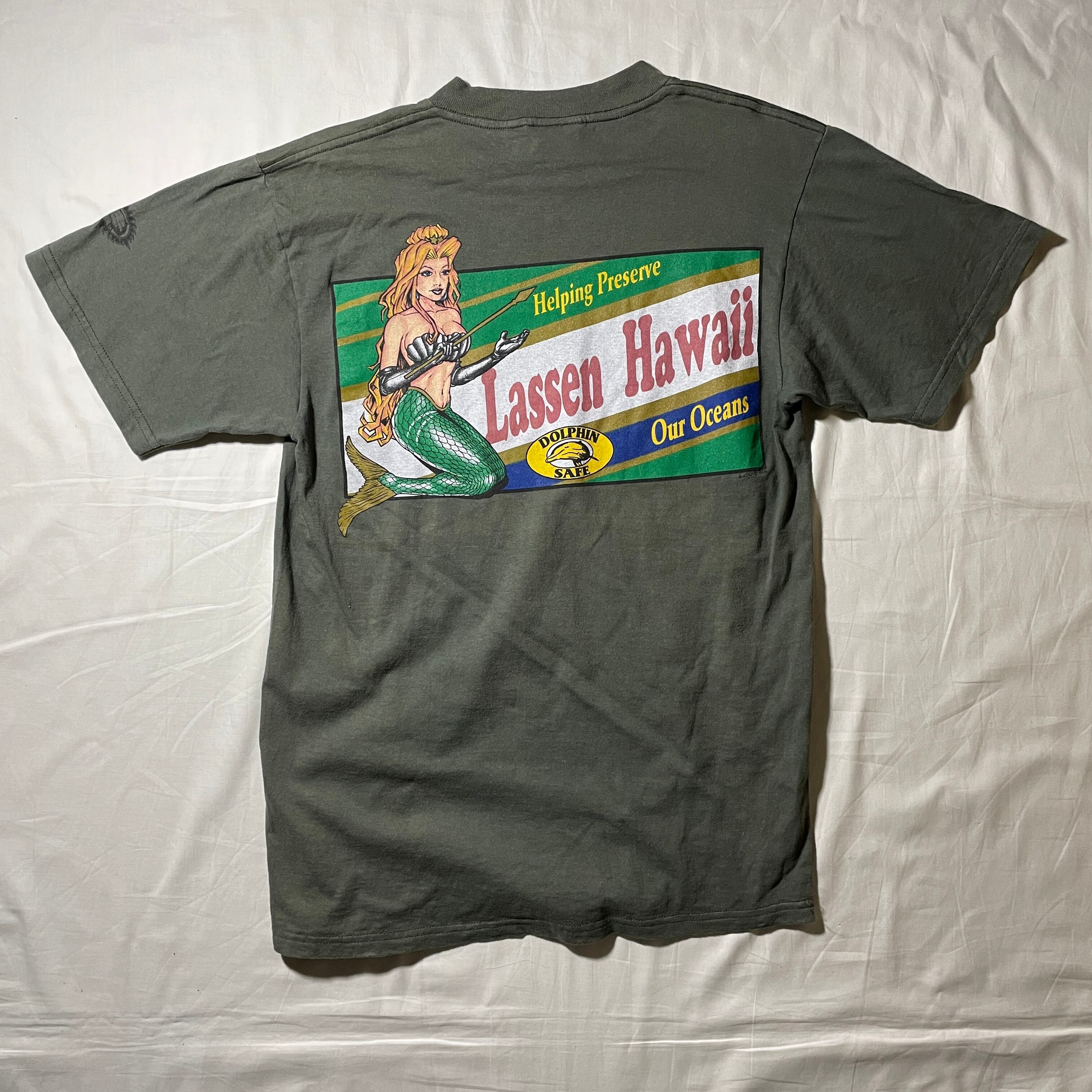LASSENというブランドのヴィンテージTシャツ。バックに大きくプリントが入るデザインでアクアマンライクなデザインがgoodです。