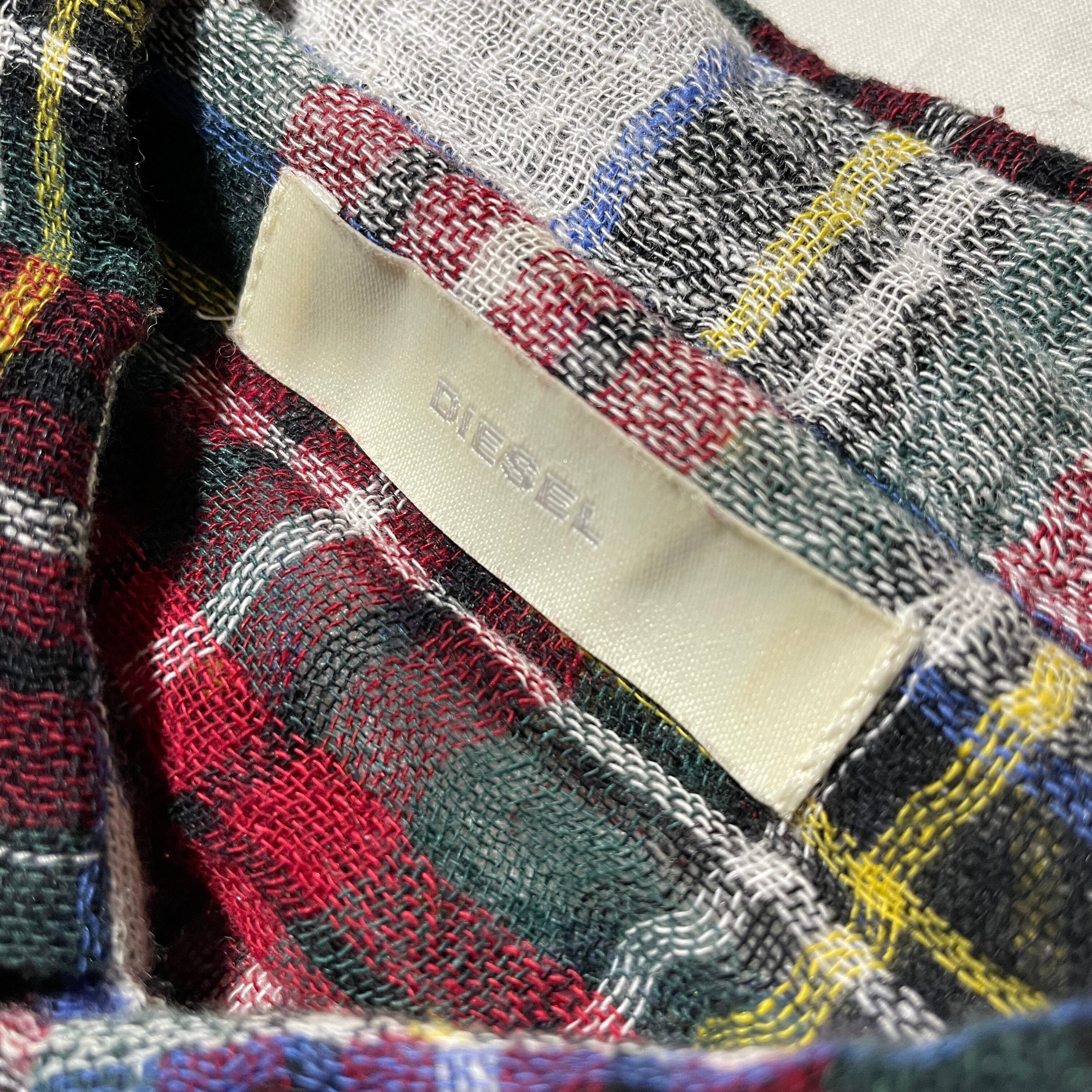 ややOLDのDiesel チェックシャツ。裾口切っぱなしのグランジ感あるデザインでやリネン×コットンの柔らかいふわっとした生地感。