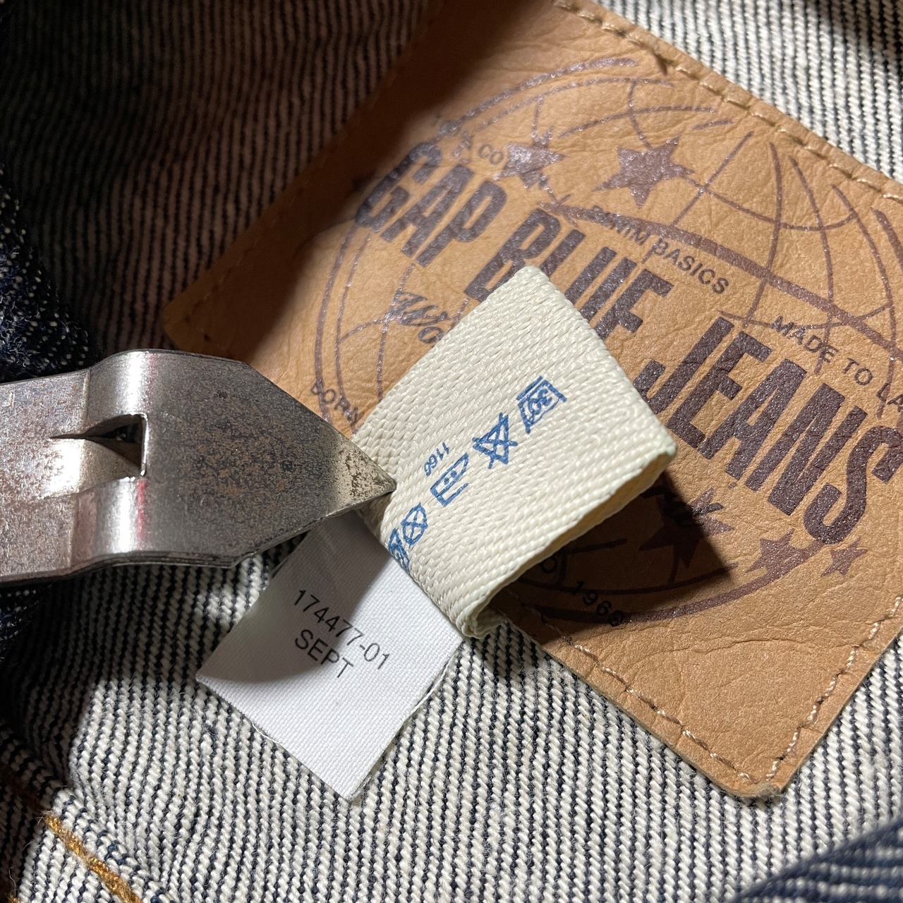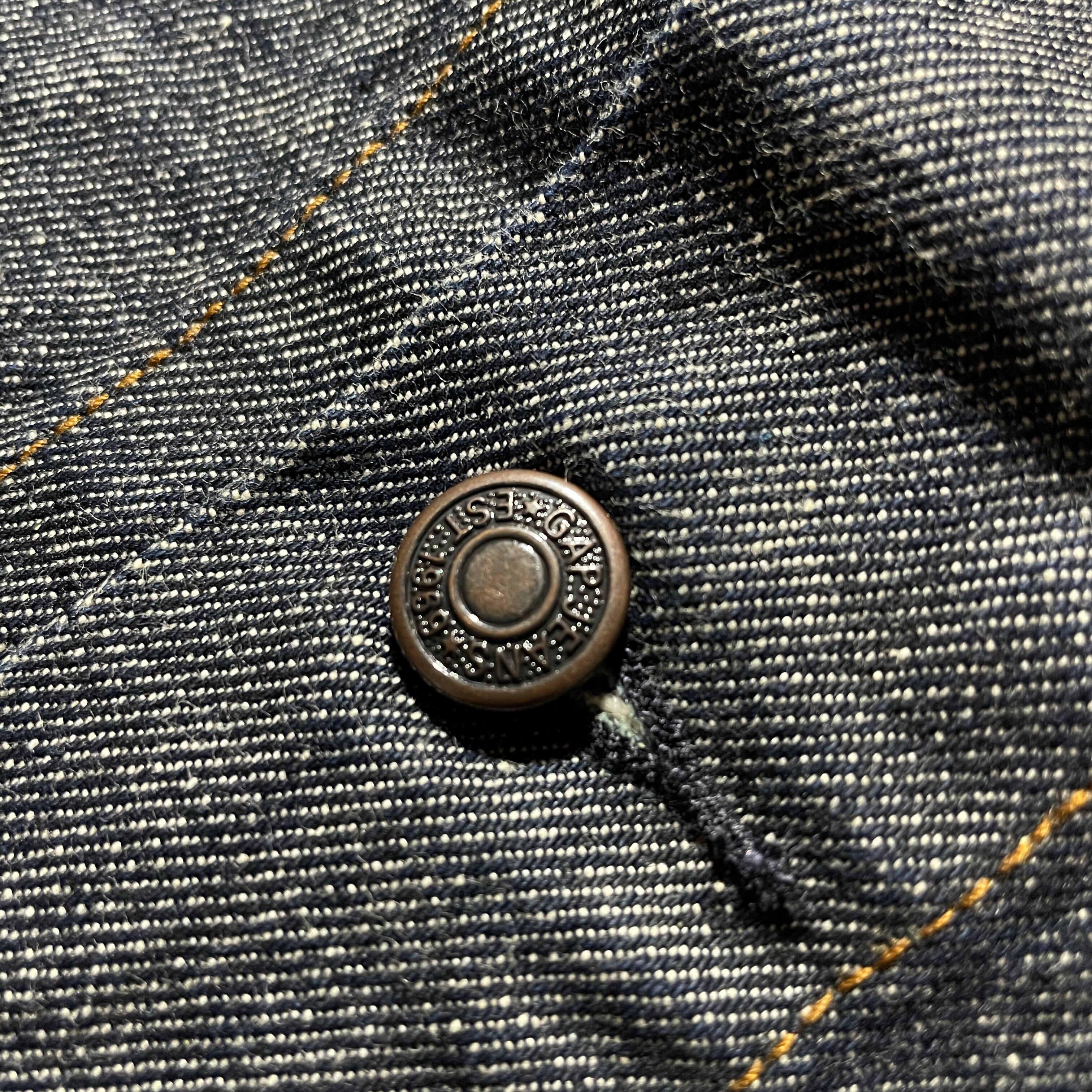 01sのOLD GAP。GAP BLUE JEANSラインのデニムジャケット。カラーはブラック、サイズはXLとY2Kらしいデザインかと思います。