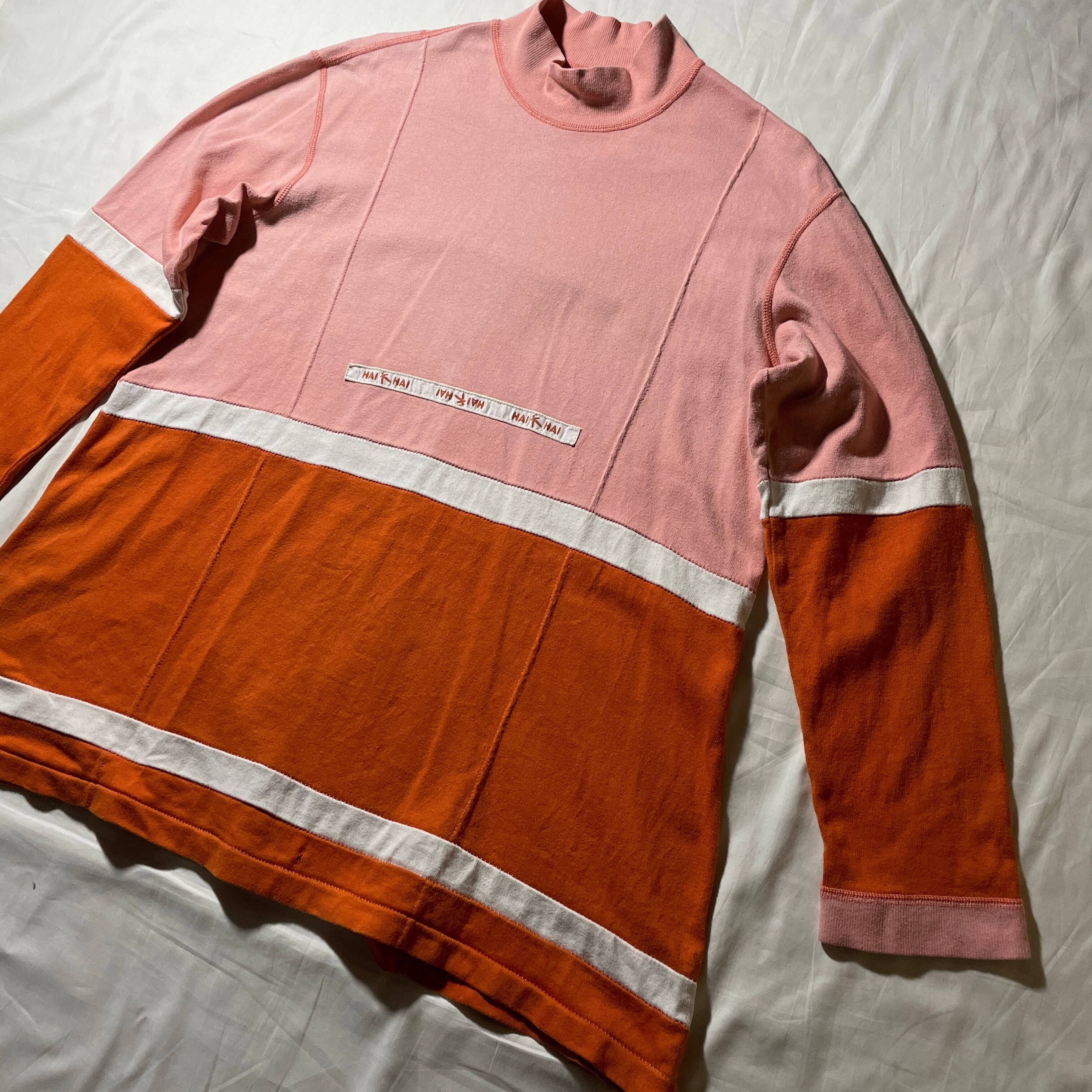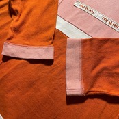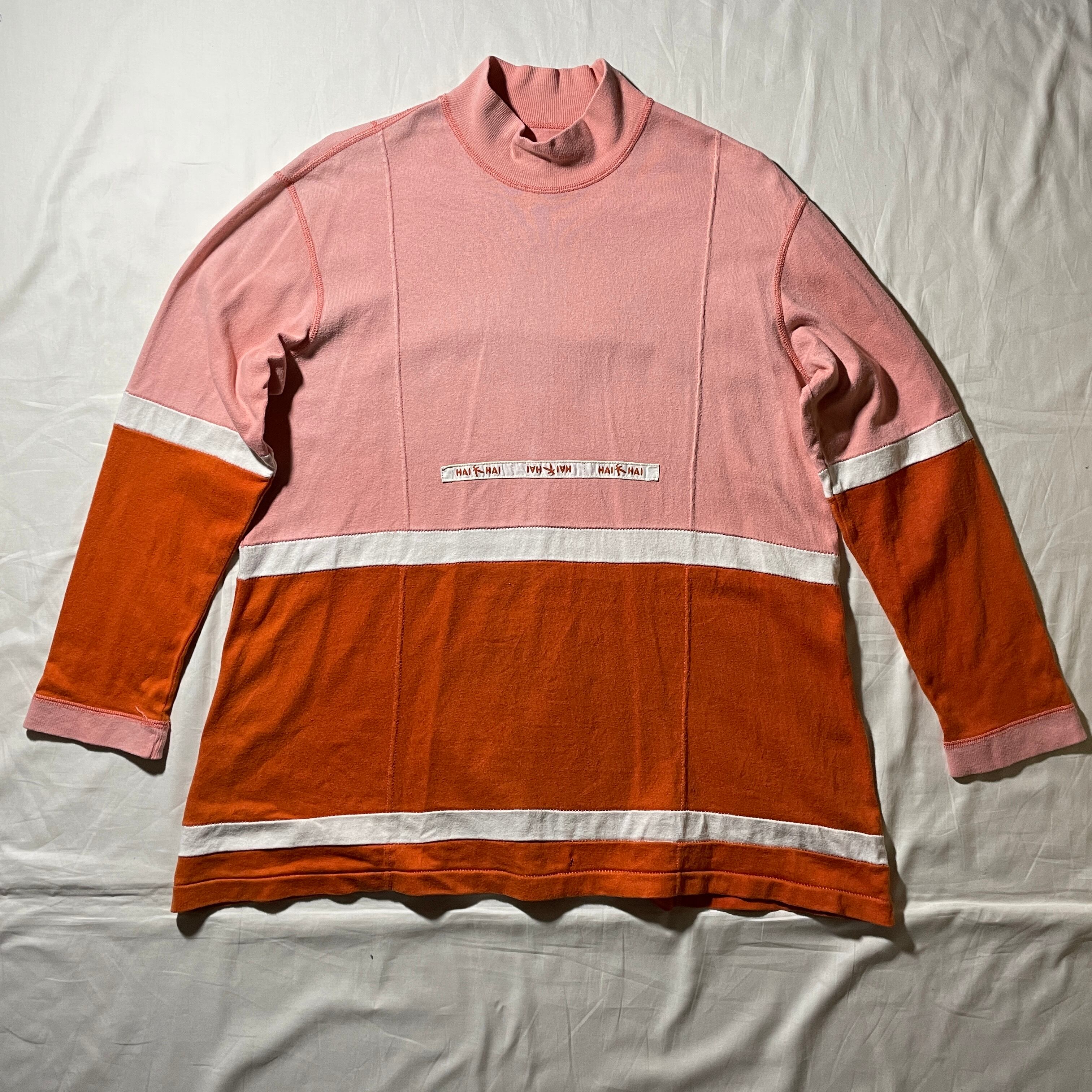 雰囲気の良いピースが多いこのブランド。こちらは80s頃のロンTで当時らしいパステル系の2トーンカラー。モックネックや裾にかけて広がったデザイン等、手が込んだ一着です。