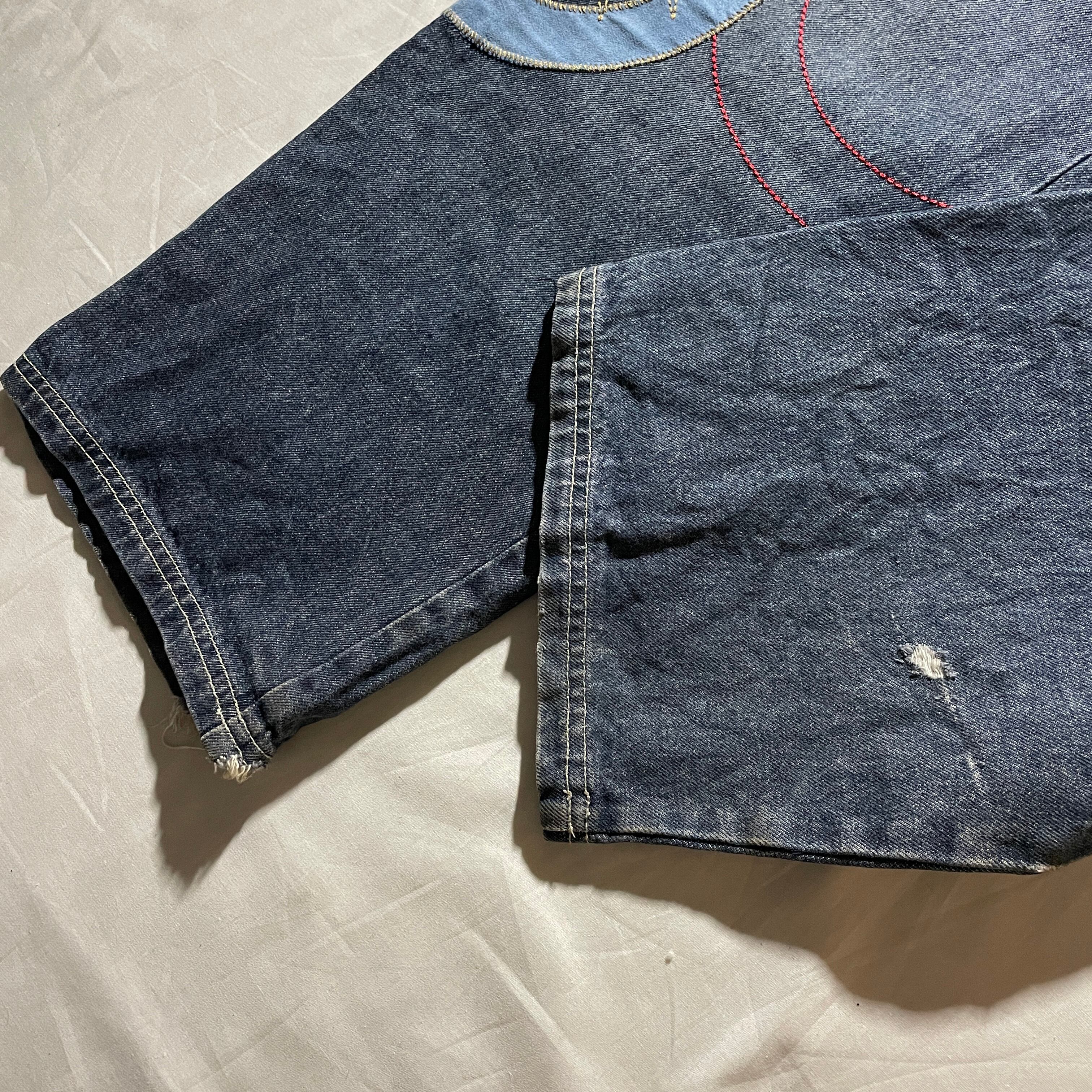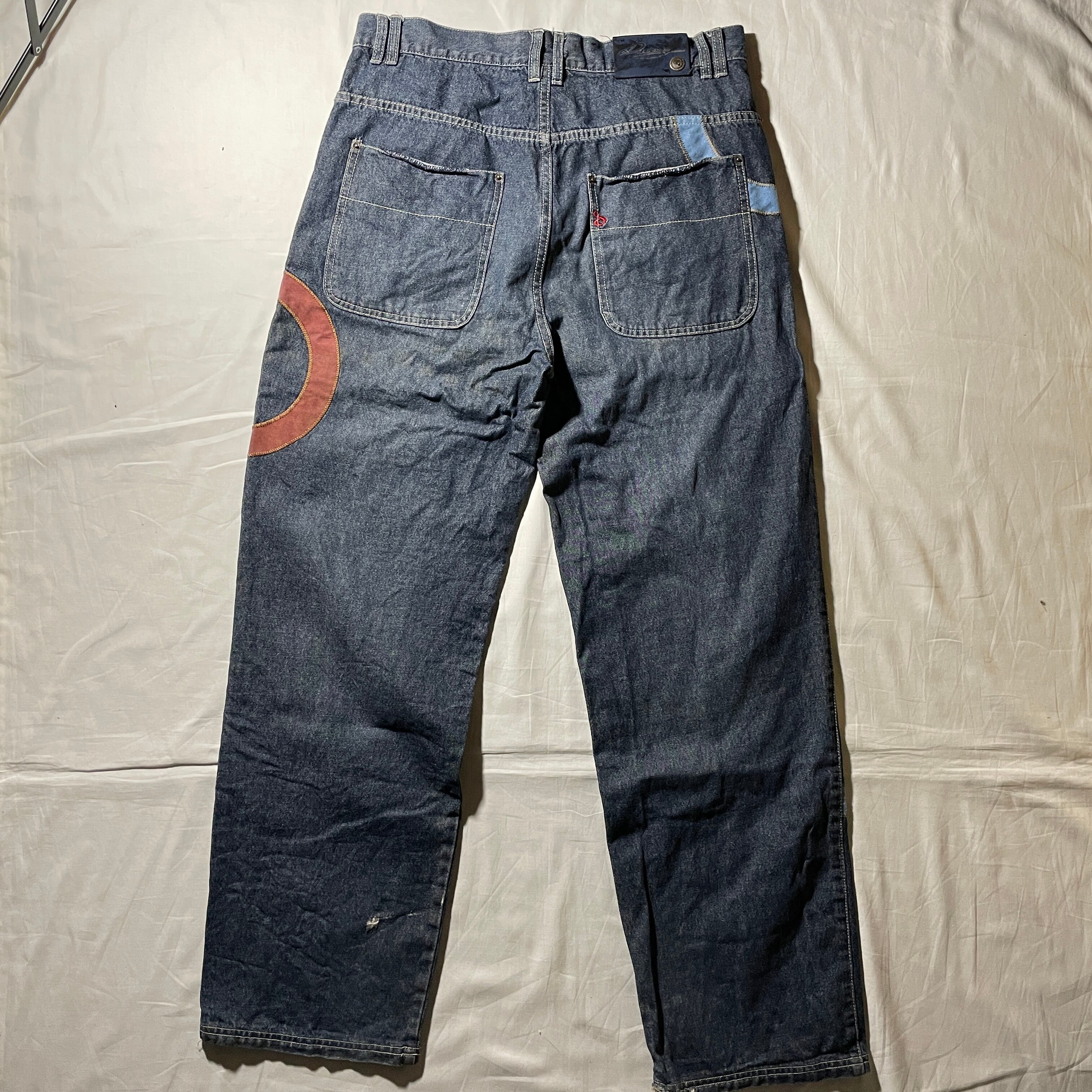 こちらは00s頃のヴィンテージ。サークルのデザインはレザーです。当時のストリートらしいワタリ広めのバギースタイルで非常に今っぽいかと思います。