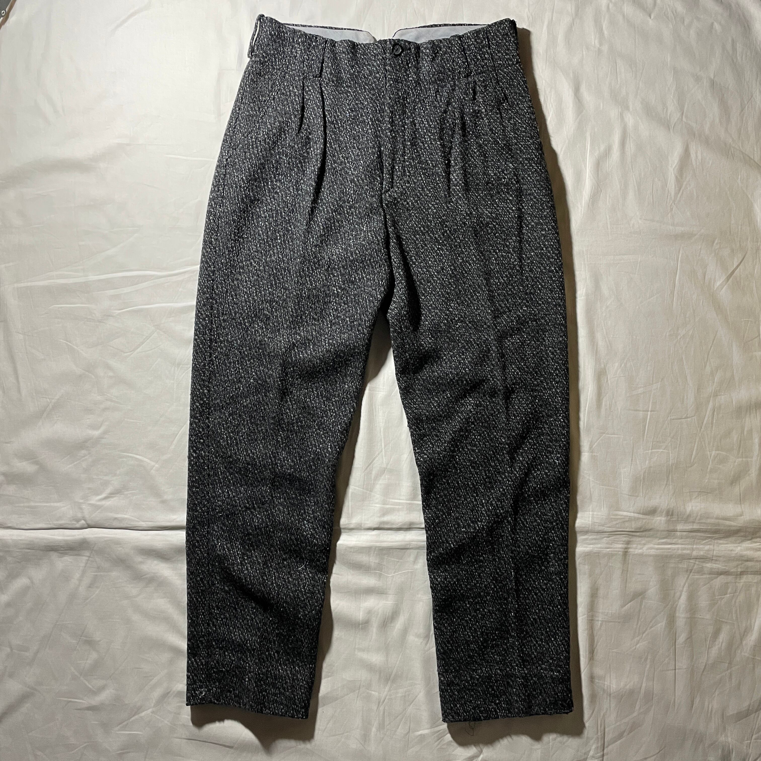 80s頃の国産ヴィンテージ。2タックのクラシカルなウール×アクリルのスラックスで全体的にネップが飛んだようなゴマシオカラー。ユーロもののヴィンテージライクなデザインです。