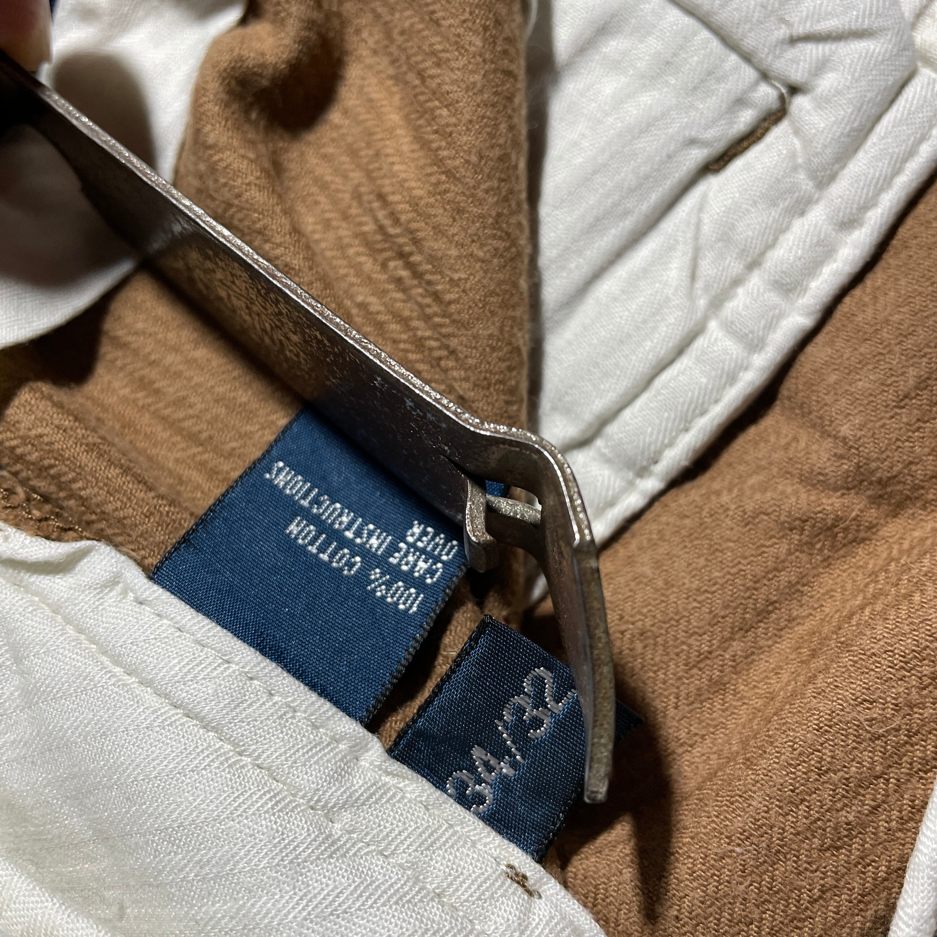 90s頃のPRL。ノータックタイプのコーデュロイスラックス。腰サイドにアジャスターベルトの付くミリタリライクなデザインはラルフらしいディテールです。