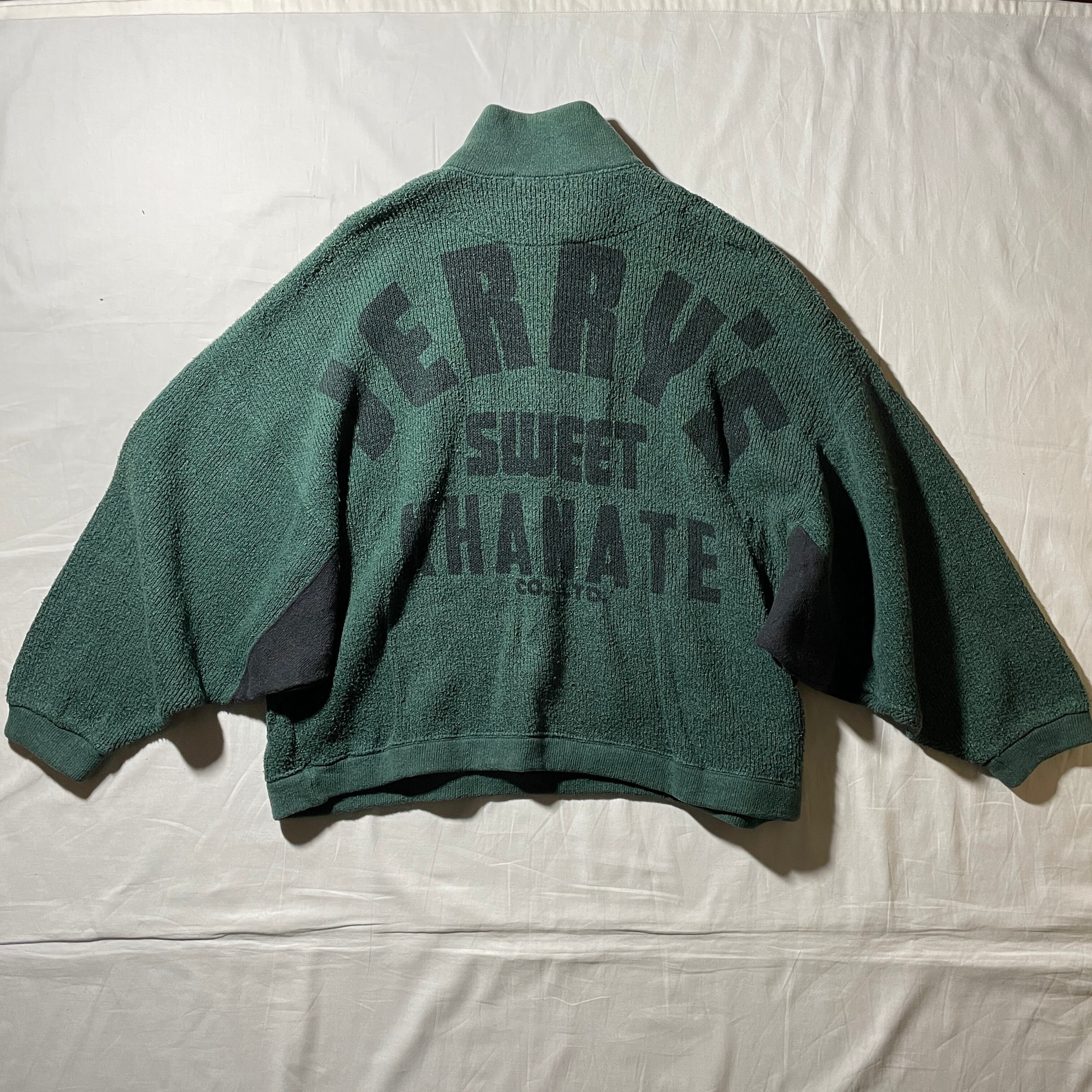 80s頃の国産ヴィンテージ。ハーフジップでパイル地ライクなスウェット。袖はドルマンスリーブになっておりモモンガみたいな面白いシルエット。