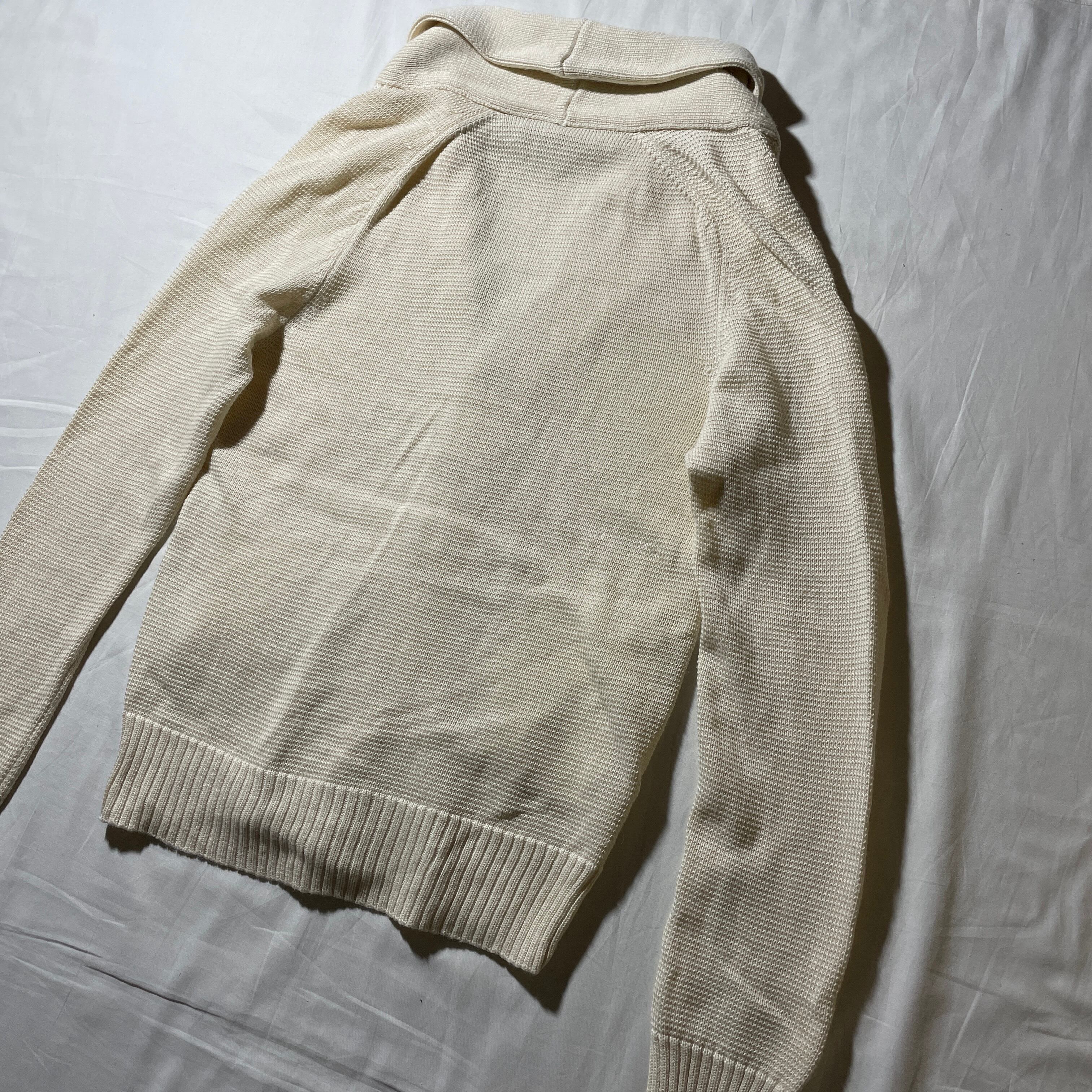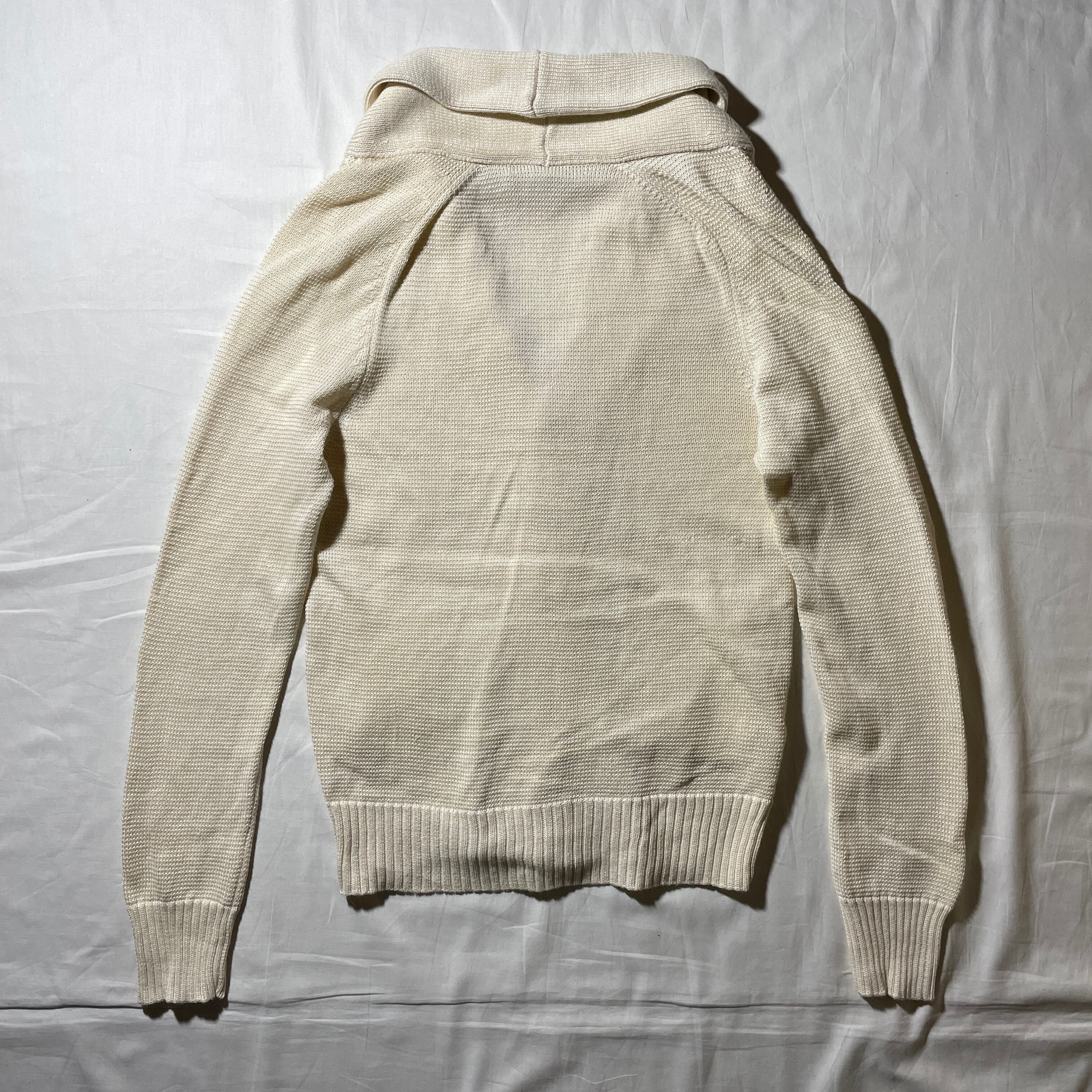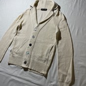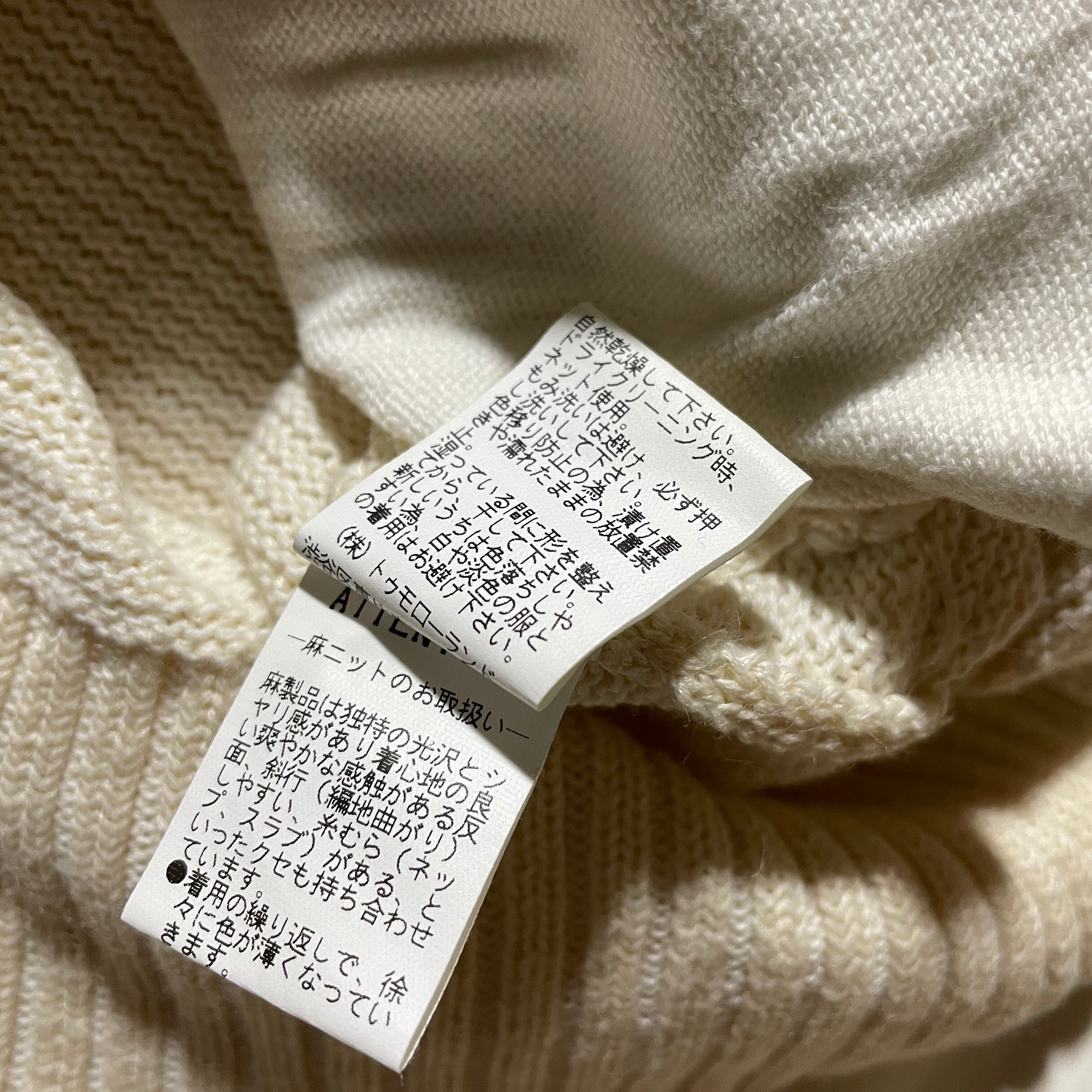 TOMORROWLAND tricotのカーディガン。コットン×麻で麻の割合が多めなのでやや厚手の生地感ながら涼しげな雰囲気。フロントのボタンは貝ボタンを使用しており流石の作りの良さです。