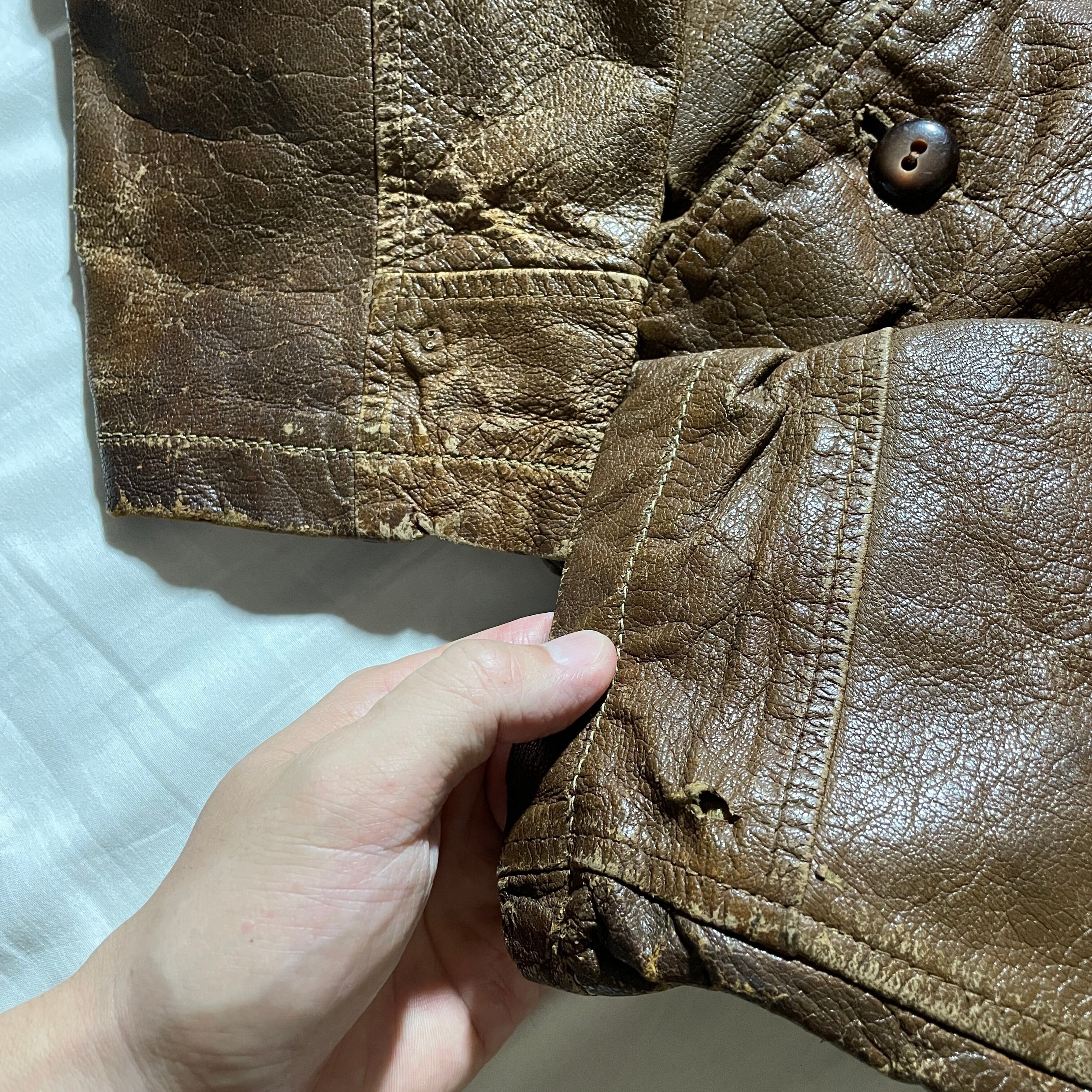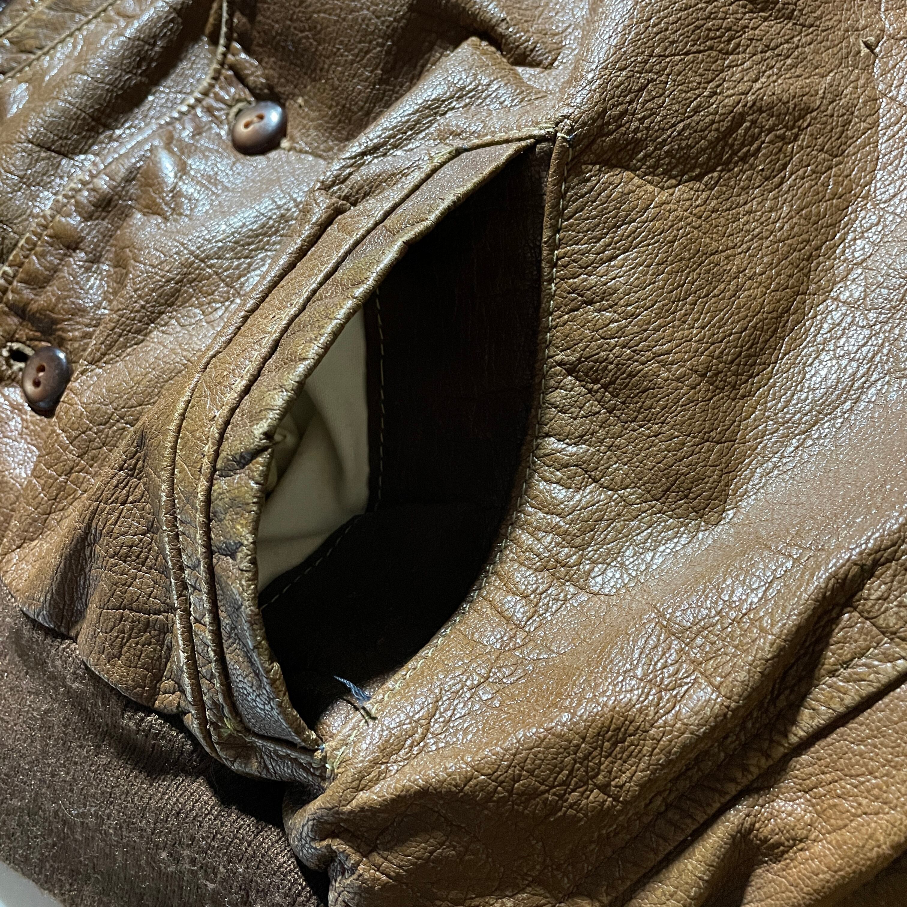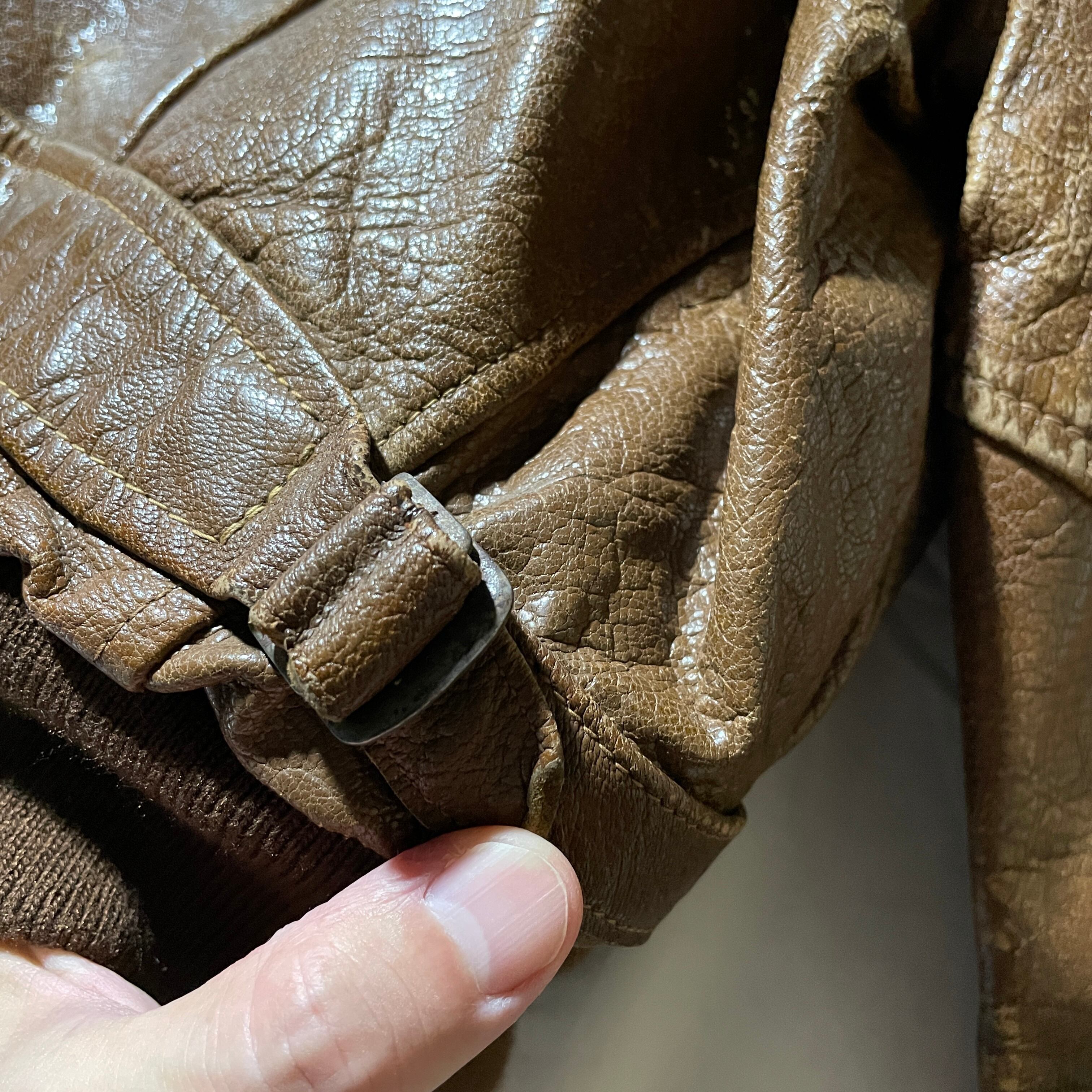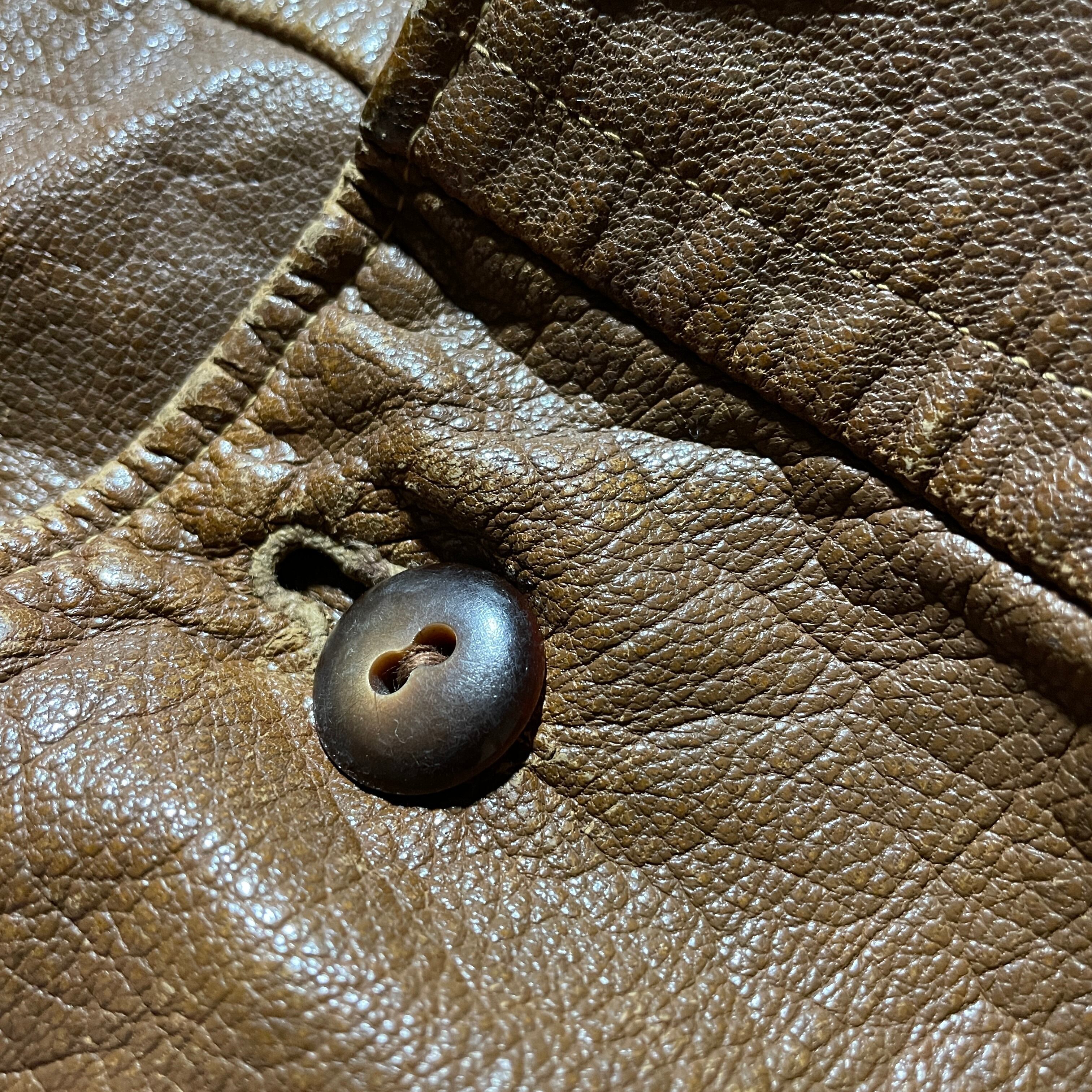 レザーは恐らくゴートスキン。質感的に40sあたりのG-1、M-422Aに近いかと。ボタンはベークライトで1番下は換えられていますが他のボタンはひび割れ無く綺麗に残っています。