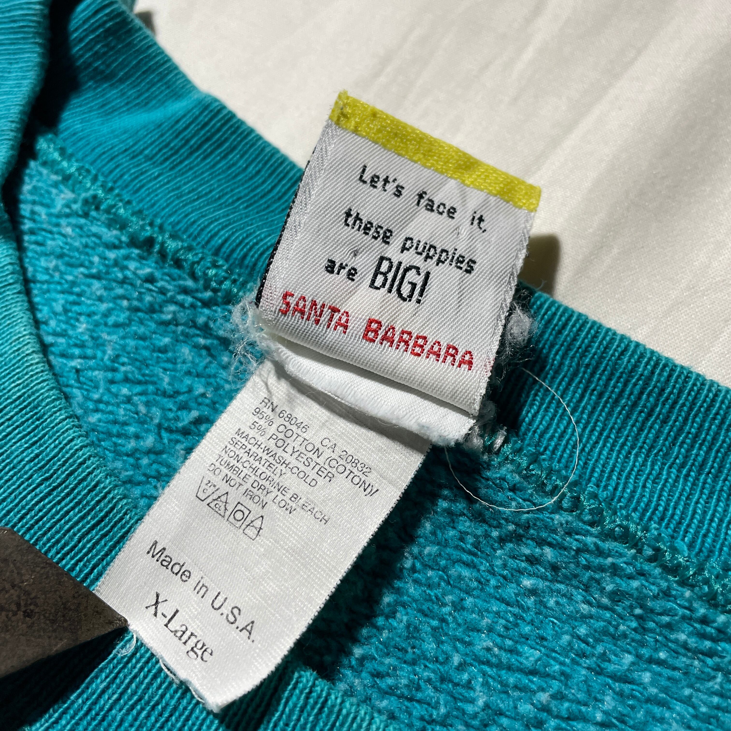 90s頃のヴィンテージスウェット。カラーリング、フロントのプリント良しのかわいい一着かと思います。XL-XXL相当のビッグサイズでUSA製も高ポイント。