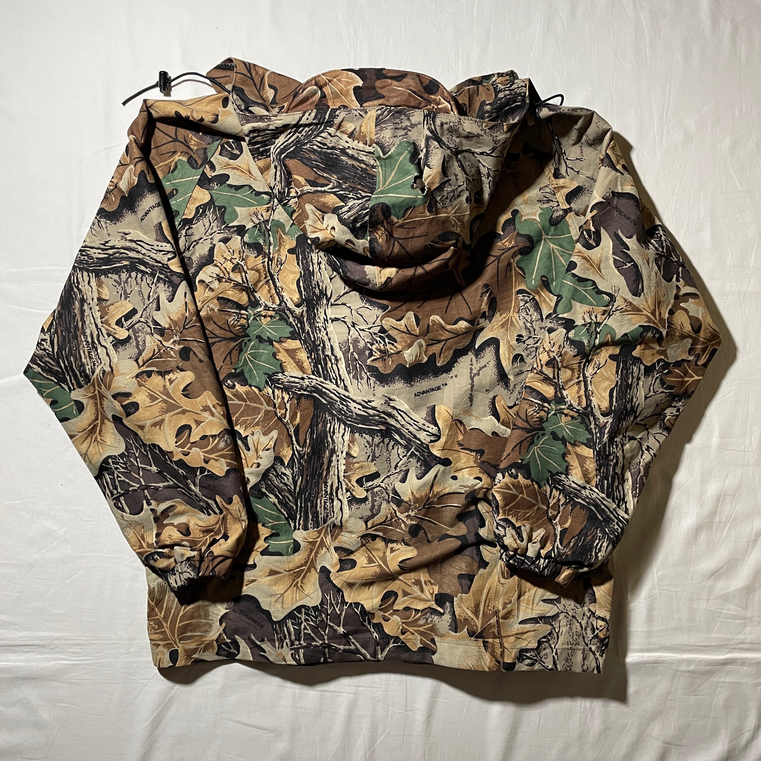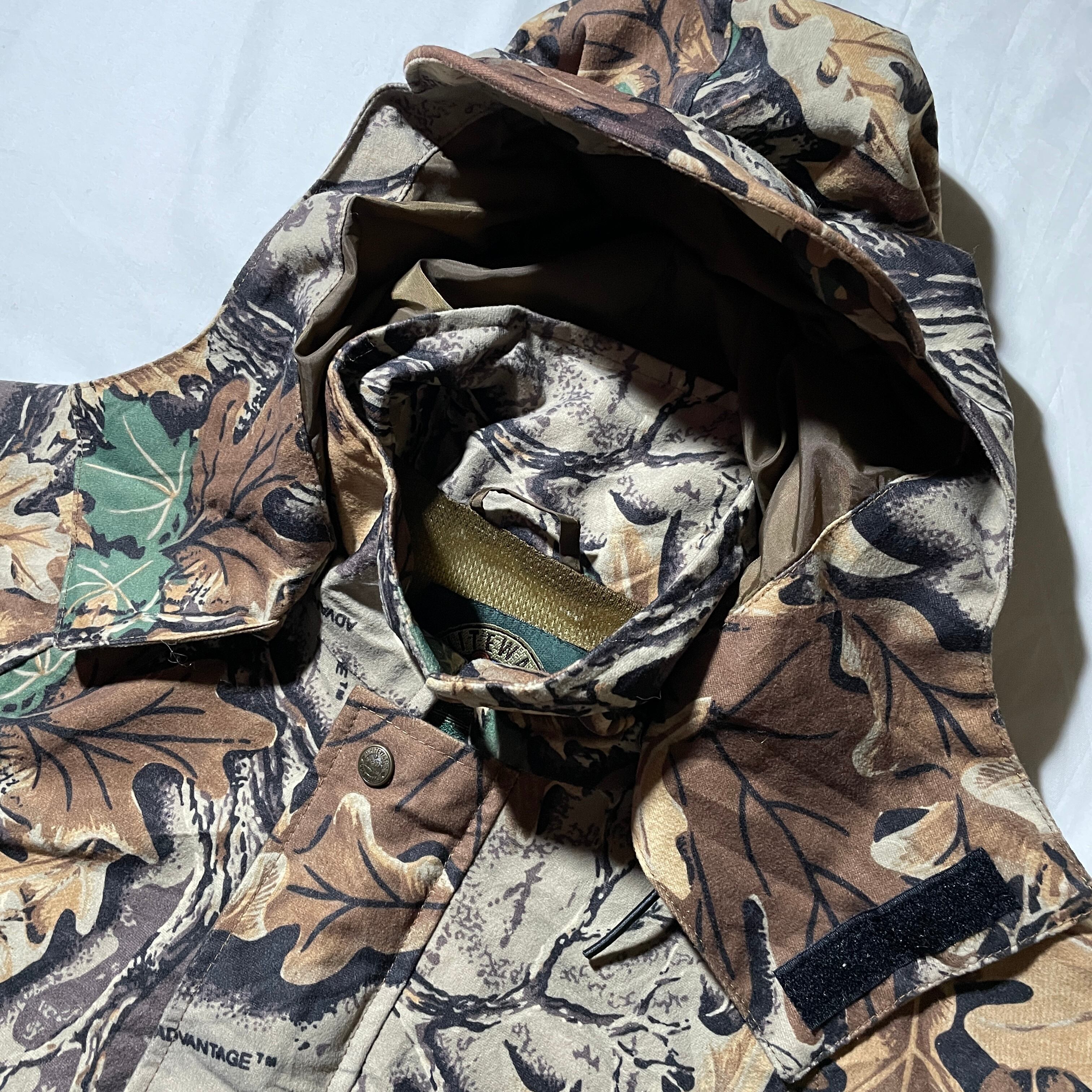 ADVANTAGEという特許を取得したリーフカモの総柄です。フードはスナップボタンで着脱可能。外すとコーチジャケットのような雰囲気でストリート感あってgoodです。
