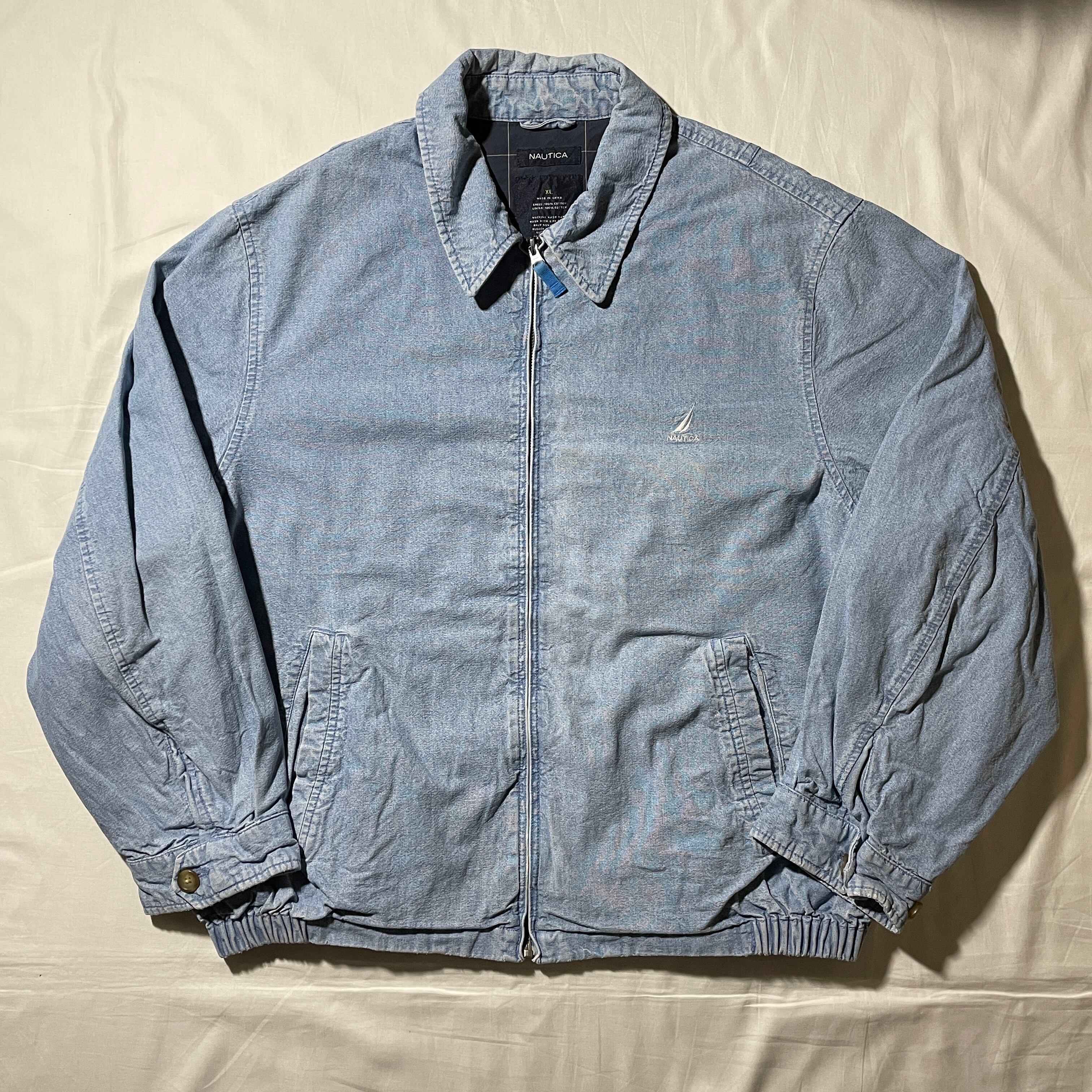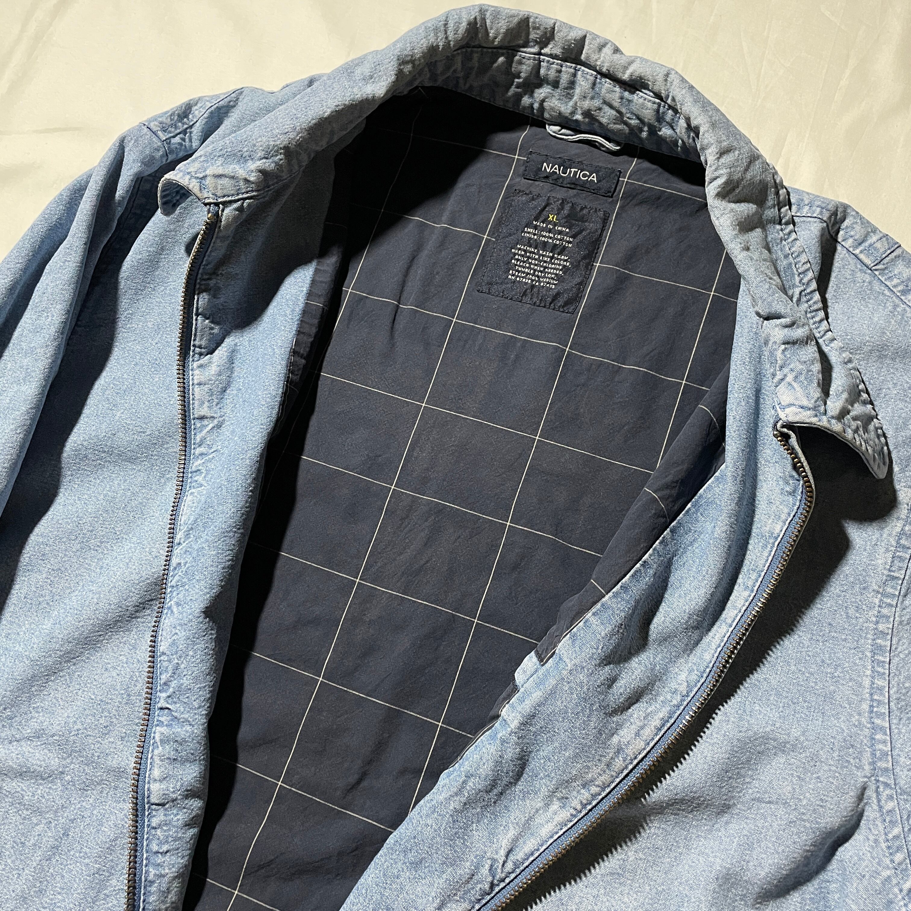 90s-00s頃のヴィンテージNAUTICA。オンス低めのアイスブルーデニムのスウィングトップ。裏地はNAUTICAらしいチェックパターン。