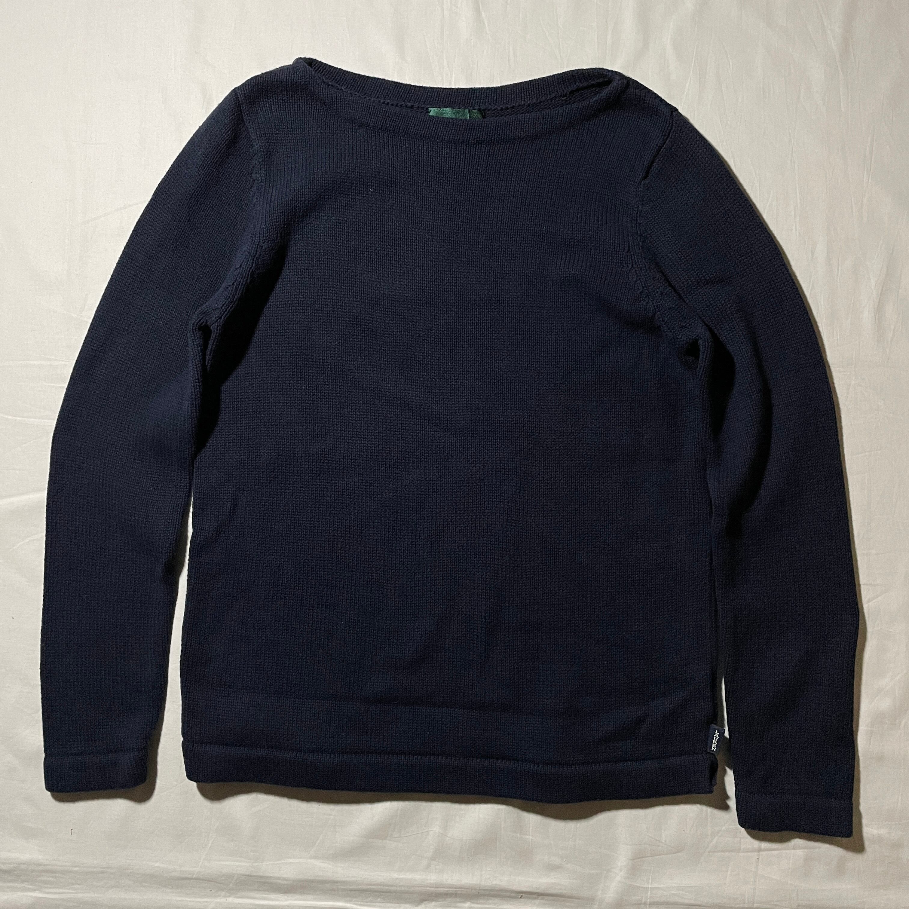 90s頃のLAUREN RALPH LAUREN。ボートネックでバスクシャツとガンジーセーターをミックスしたようなデザイン。ローゲージ編みでヴィンテージ感のある一着になってます。
