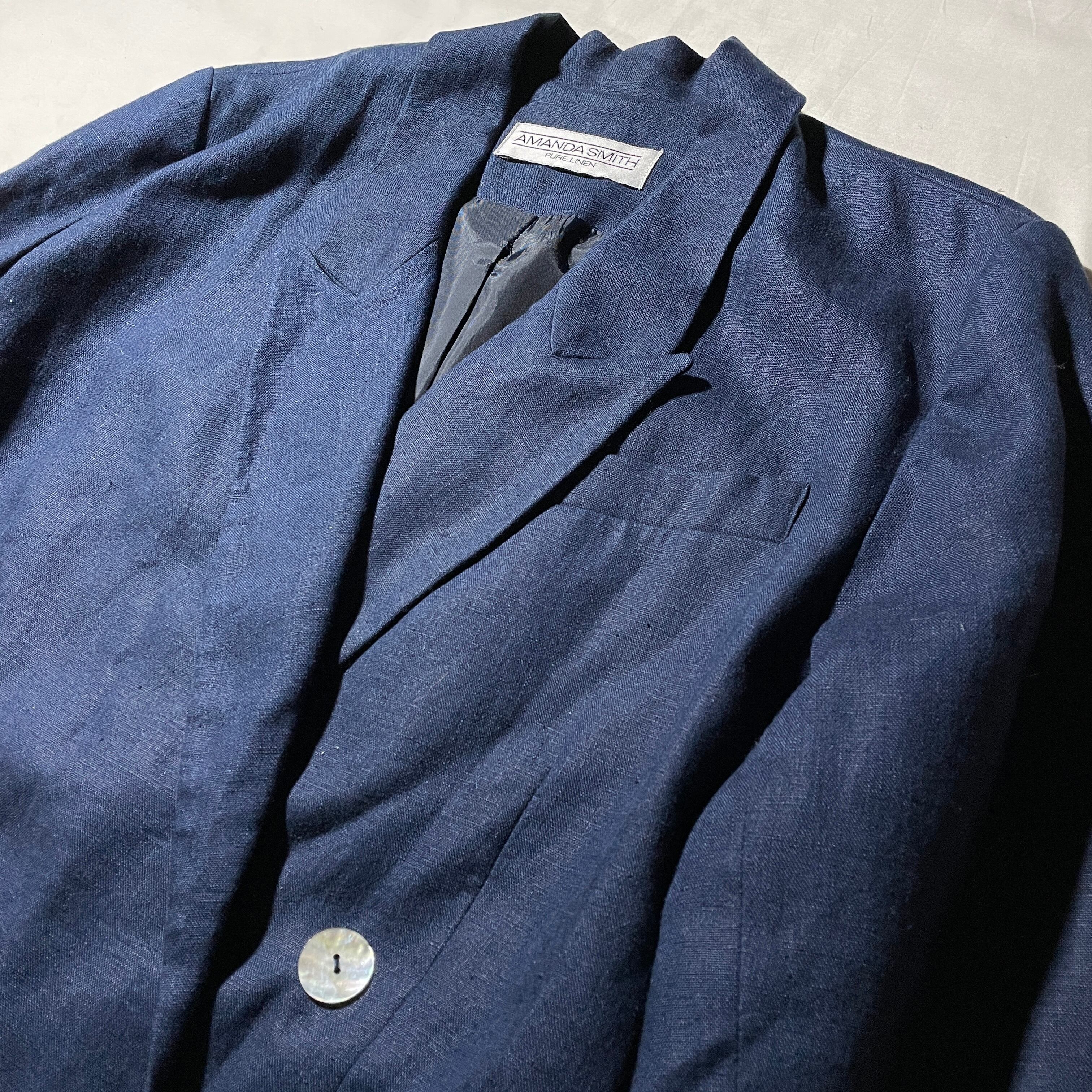 90s頃のAMANDA SMITHというブランド。ダブルブレストのテーラードジャケットでピュアリネンを100%用いた高級感のあるアイテムです。