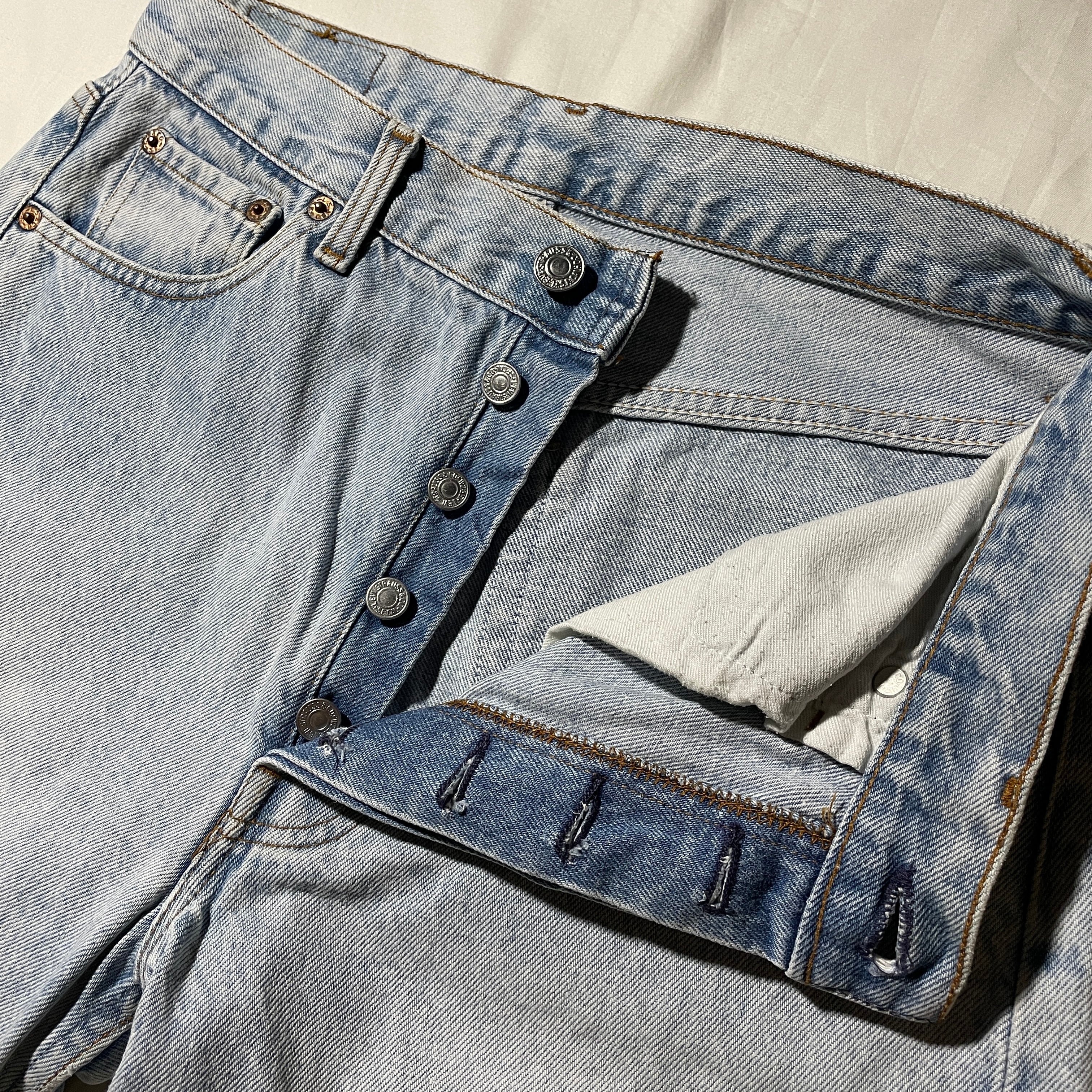 90sのLevi’s 501。色が落ち切ったアイスブルーカラー。現在も枯渇傾向にありますがこれからどんどん数が減ってくると思います。